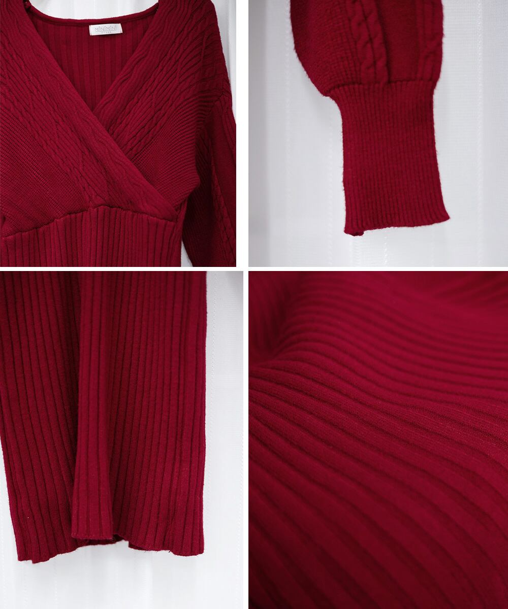 レディース カシュクールワンピース ケーブル編みニット セクシー タイトワンピ オフショルダー ニットミニドレスおしゃれ