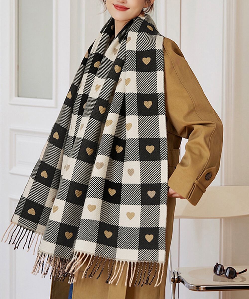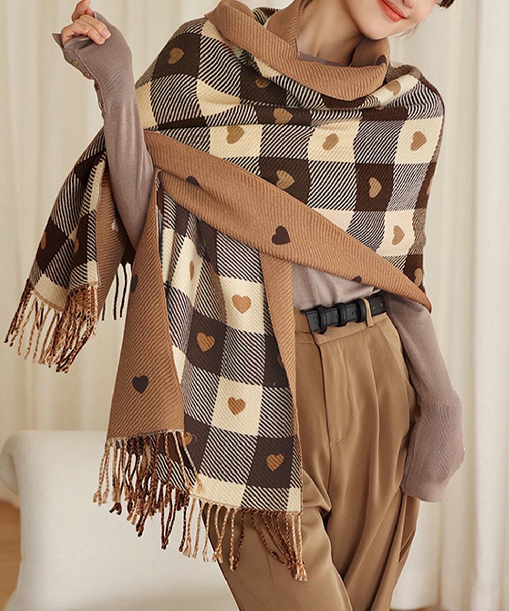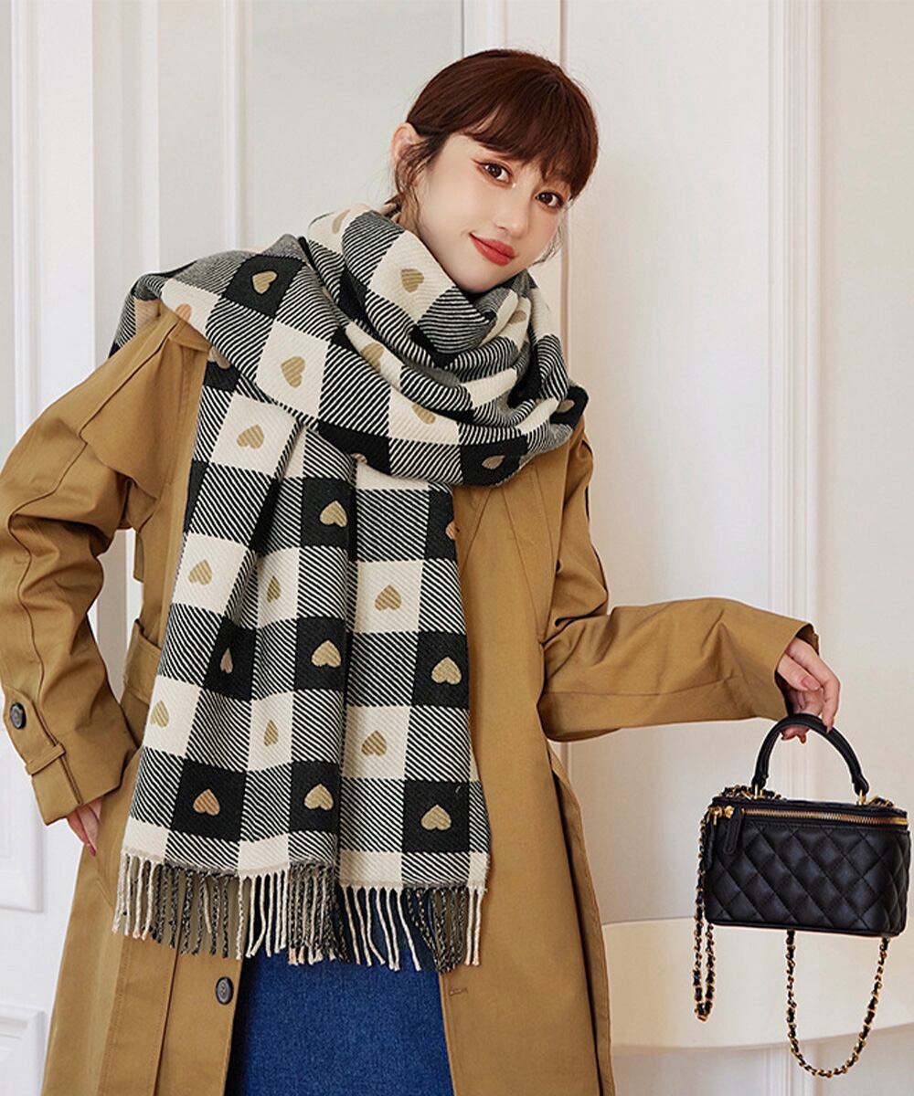 可愛い ハート柄 スカーフショール リバーシブル レディース  おしゃれ フリンジ 襟巻き 秋冬 防寒ひざ掛け 暖かい