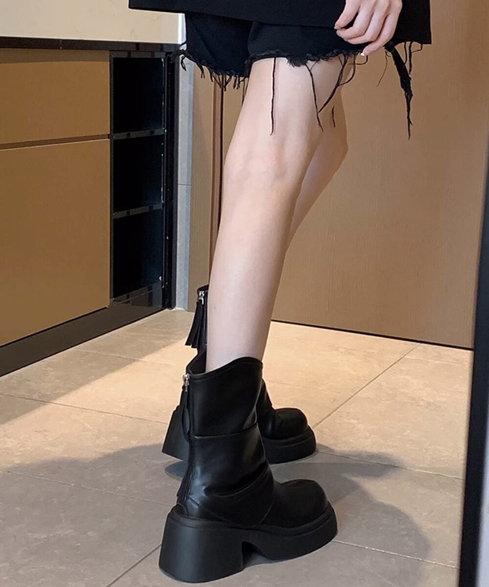 厚底ショートブーツ 太ヒール 韓国秋冬靴