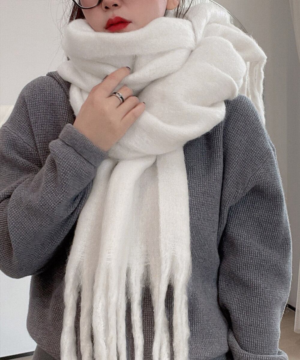 ボリューム ワイドマフラーフリンジ 無地