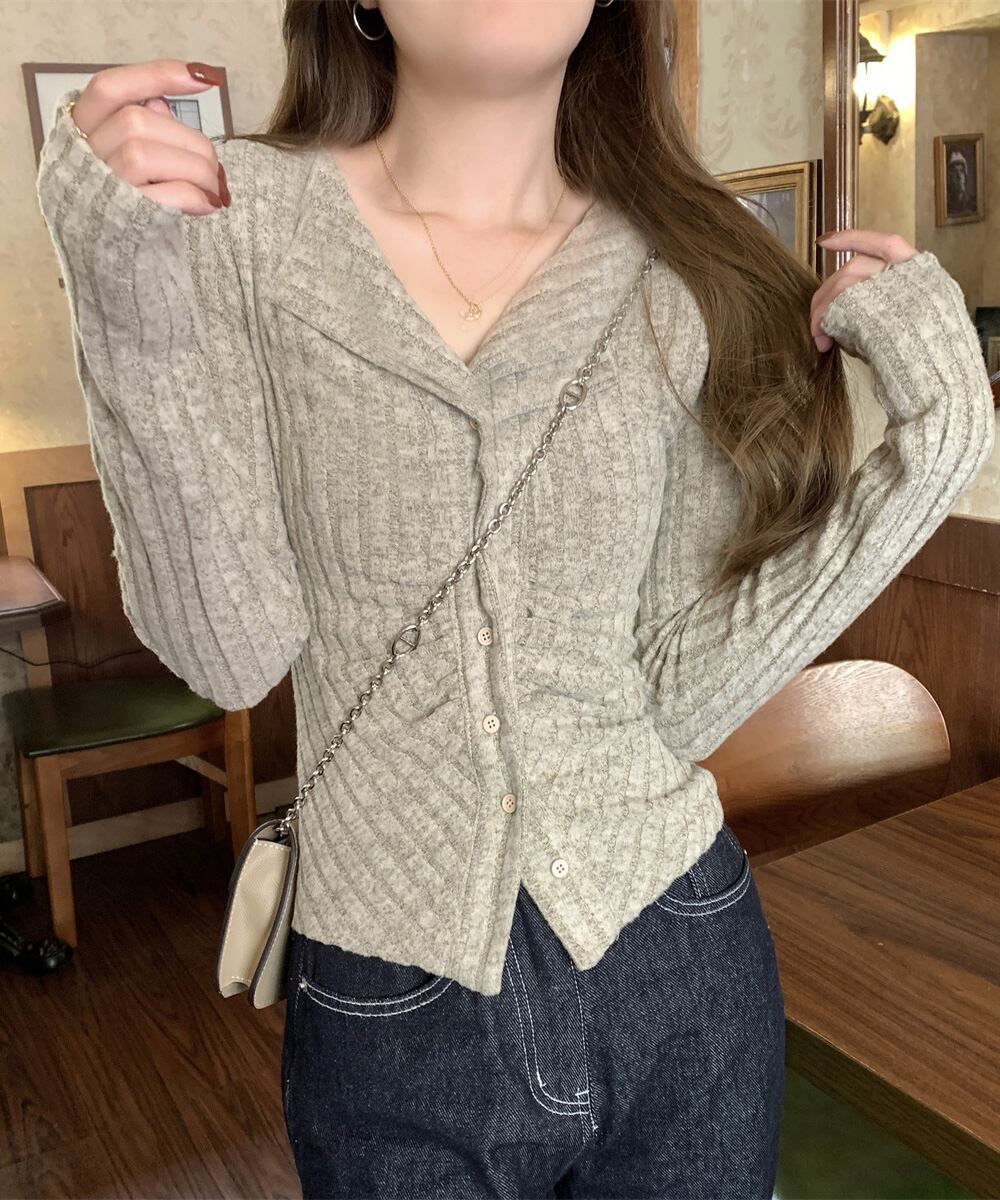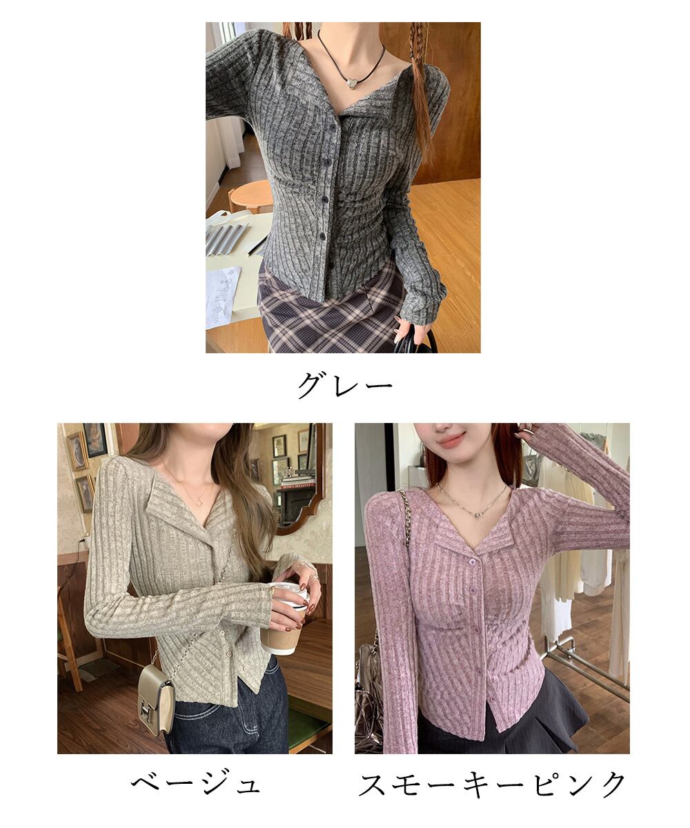 ニットトップス 前開き 編み フィット感 無地 セクシー 大人 可愛い おしゃれ 着やせ オルチャン