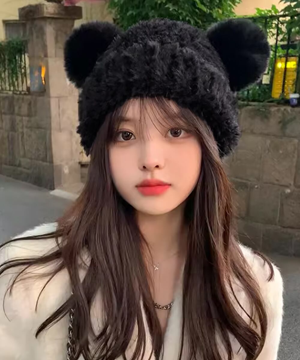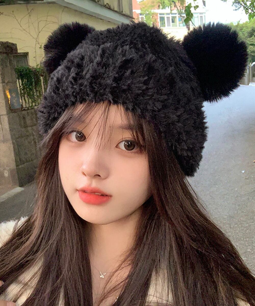 くま耳ニット帽 小顔 レディース 韓国風