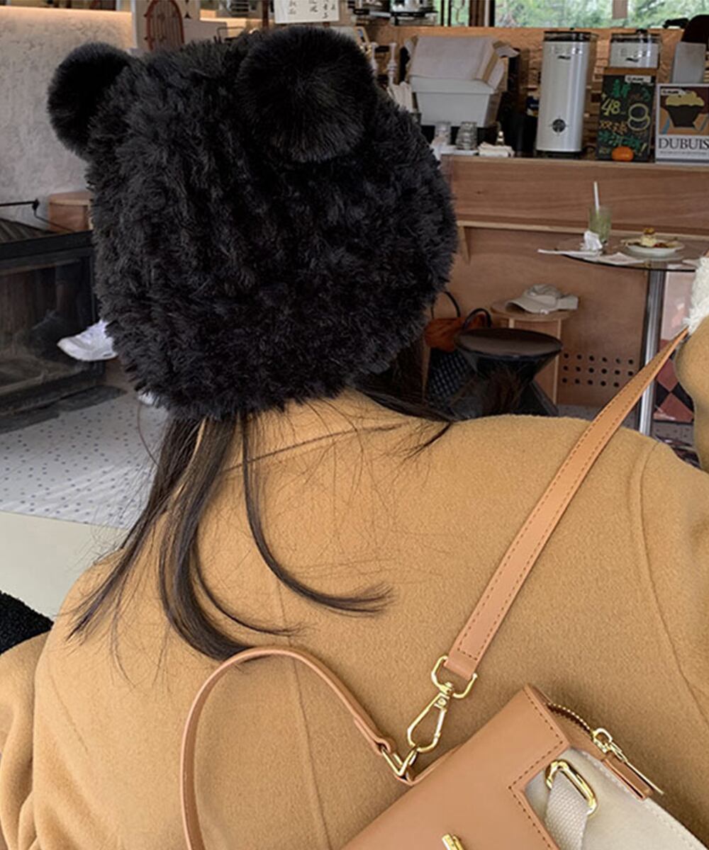 ふわふわで可愛らしいくまみみニット帽子。