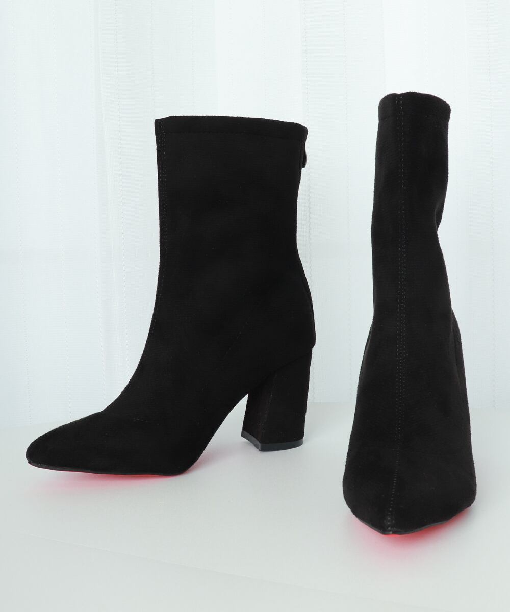 ブーティ ポインテッドトゥ 太ヒール 無地 美脚 通勤  OL 韓国 きれい 大人 おしゃれ シンプル 痛くない