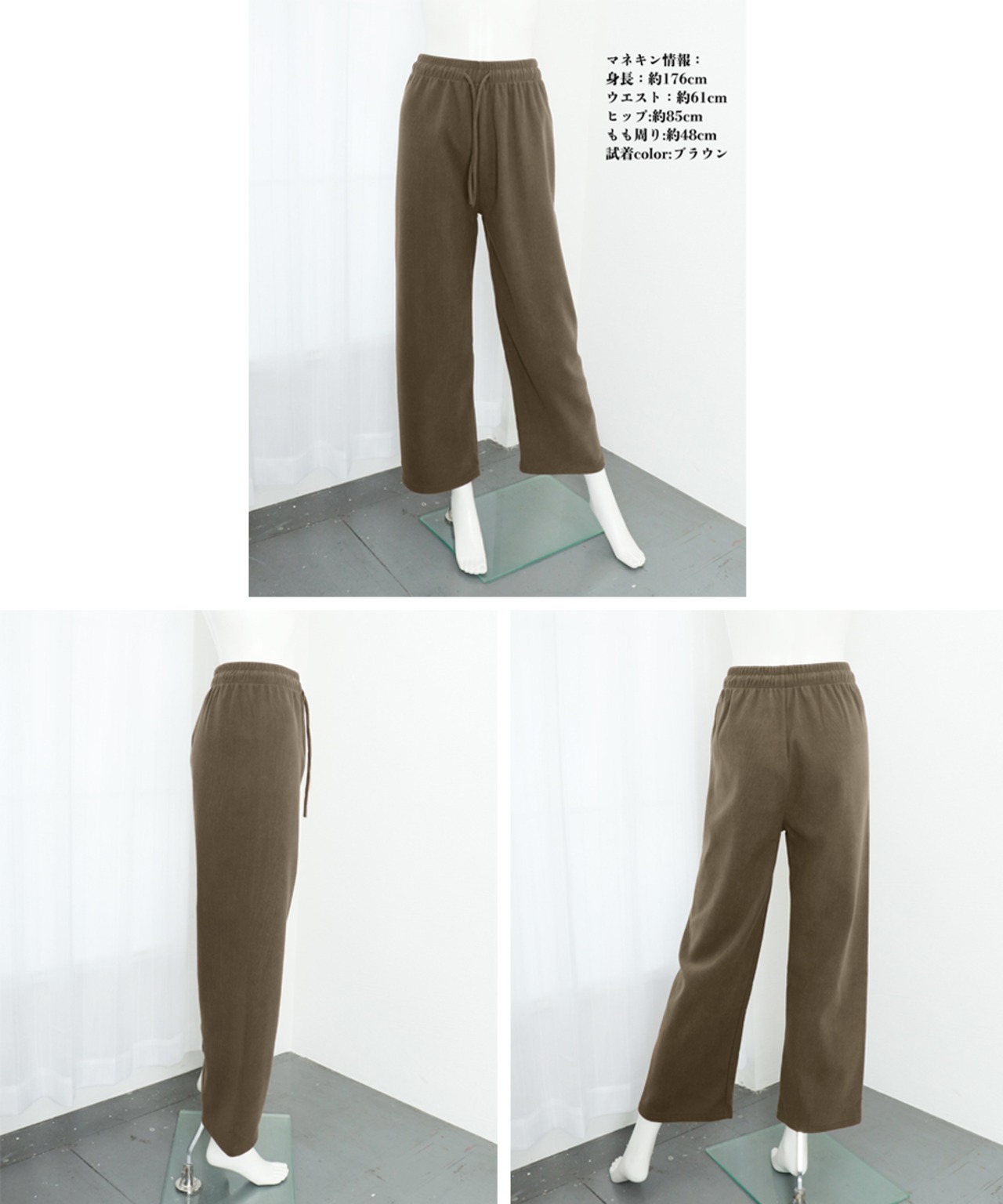 ウエストゴム仕様、また紐で調節できるのでお好みに合わせてストレスフリーなはき心地。