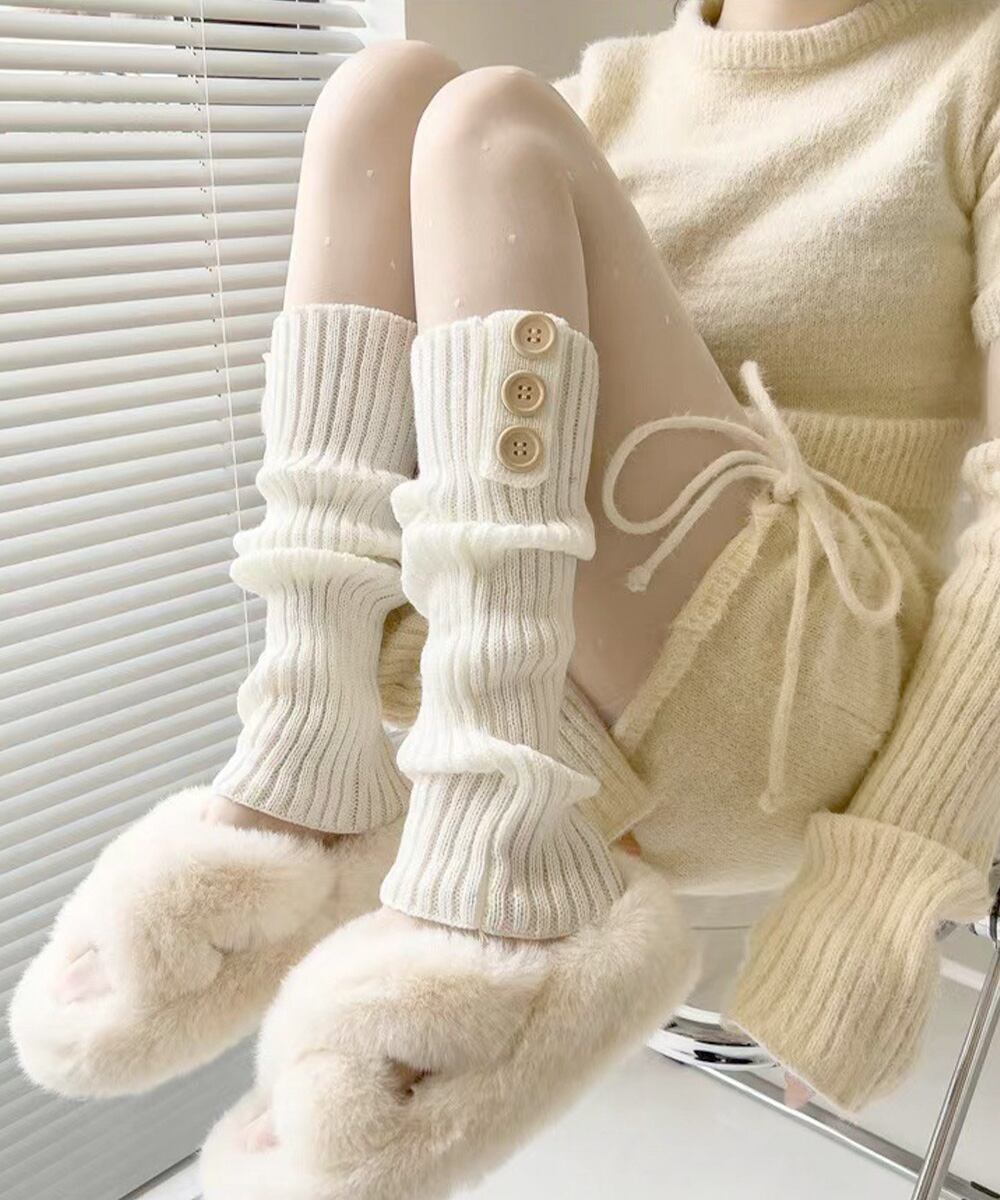 レディース ニットレッグカバー ボダン飾り 暖かい 防寒グッズ おしゃれ コスプレ 寒さ対策 ボリューム