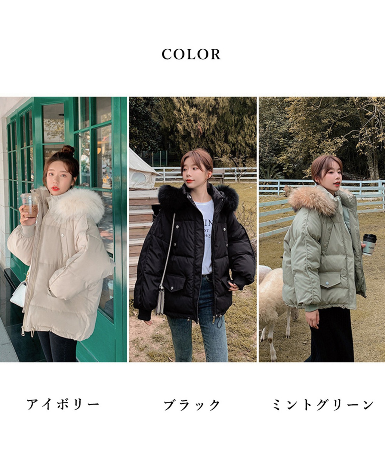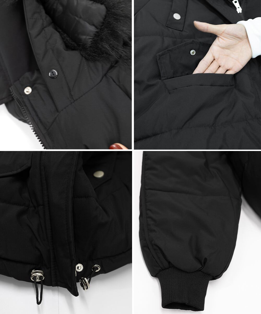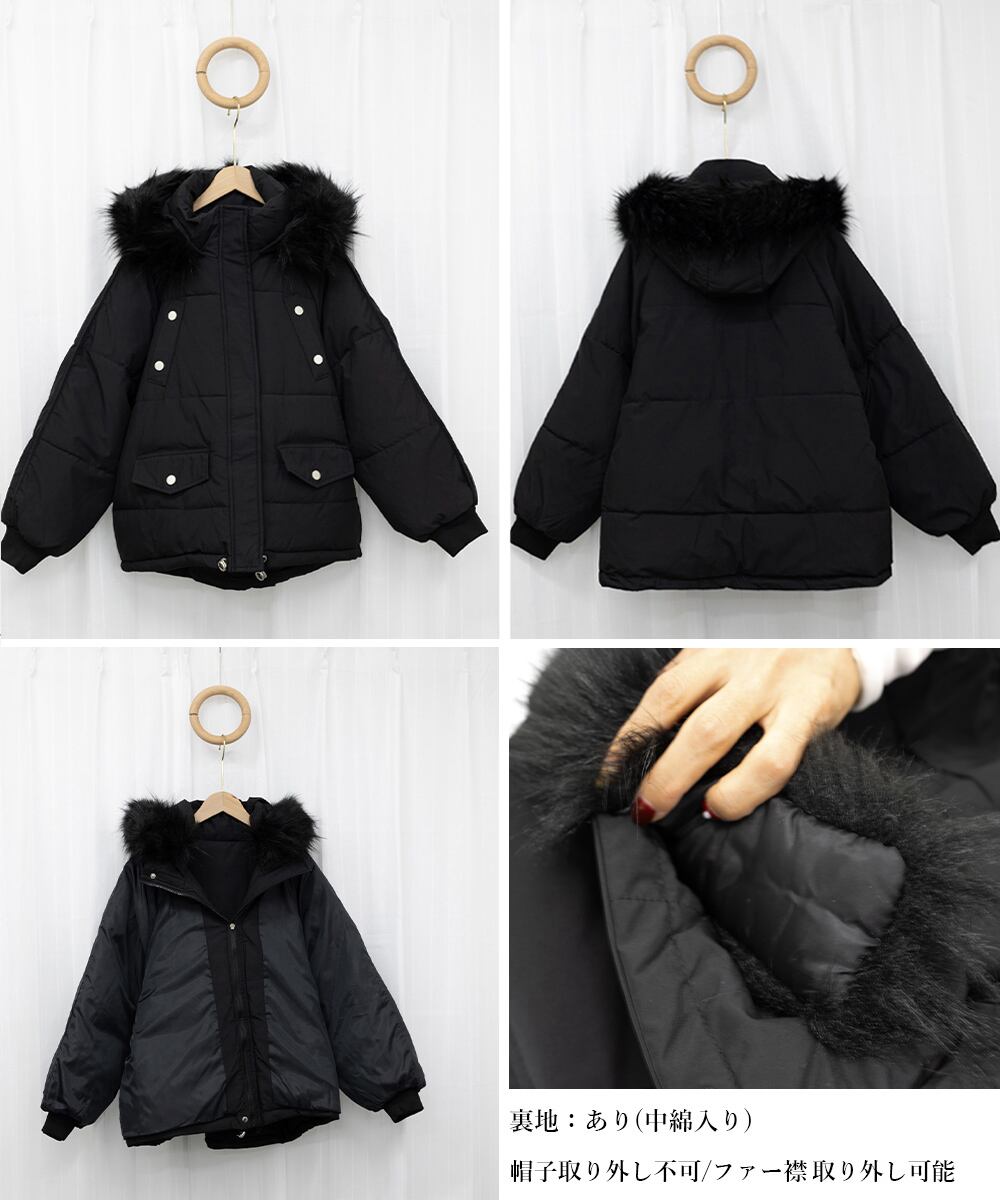 フェイクダウン冬服 ウィンターコート黒 フードファーお洒落