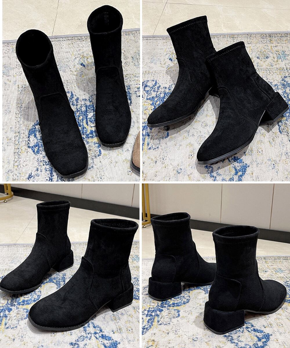 スエードブーツ 疲れないブーティー おしゃれ アンクルブーツ スクエアトゥ 内ボア秋冬靴 ローヒール 歩きやすい美脚脚長
