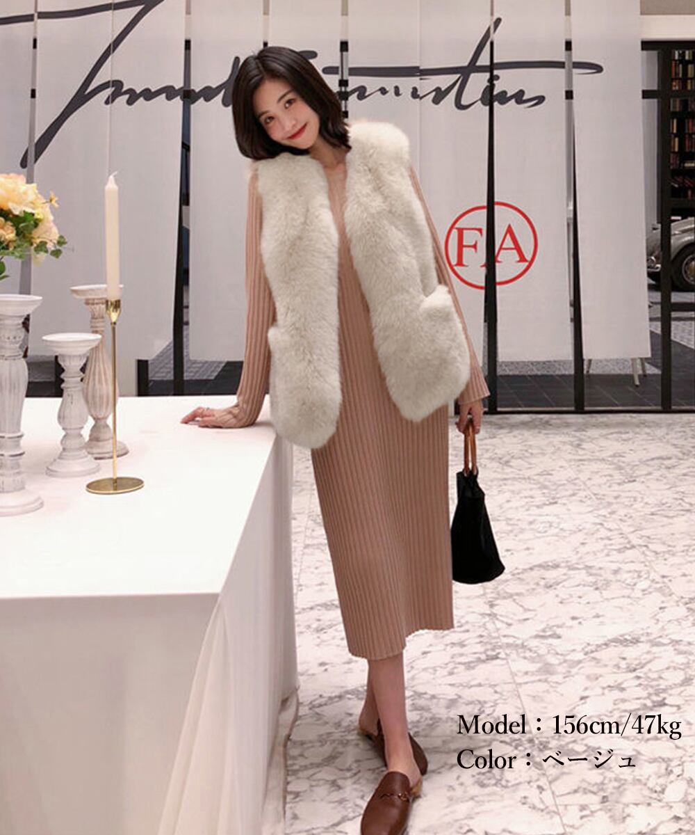 レディース ふわふわ フェイクファーコート ノースリーブ ファージャケット おしゃれ 秋冬アウター 暖かい中綿 裏地付き