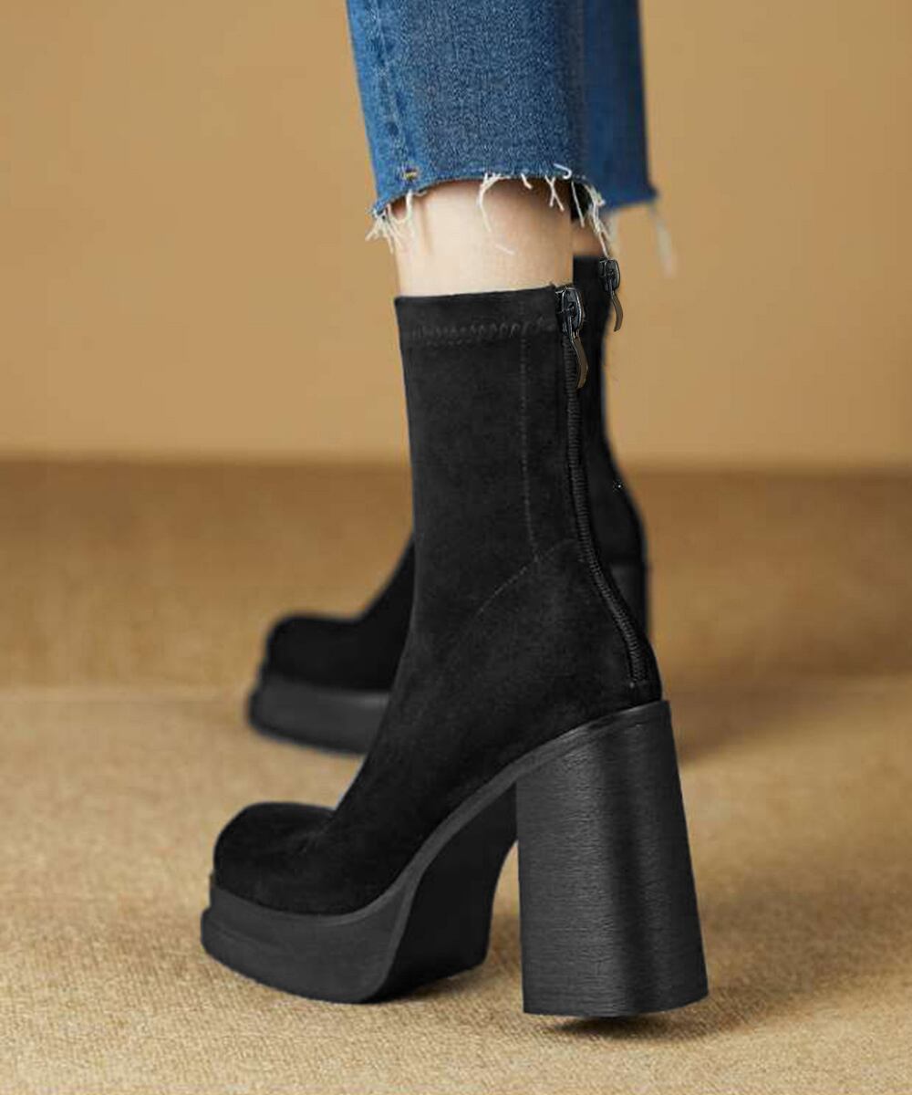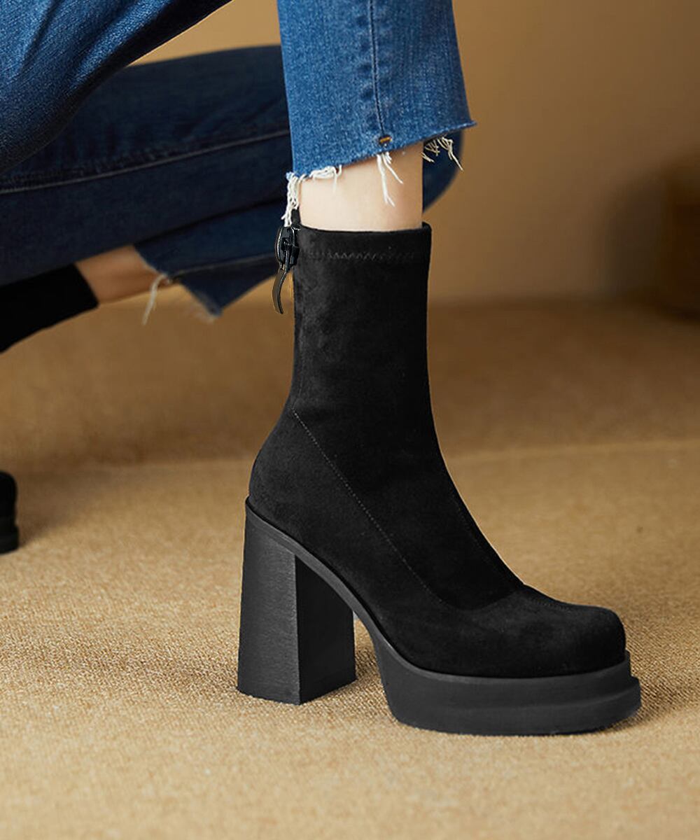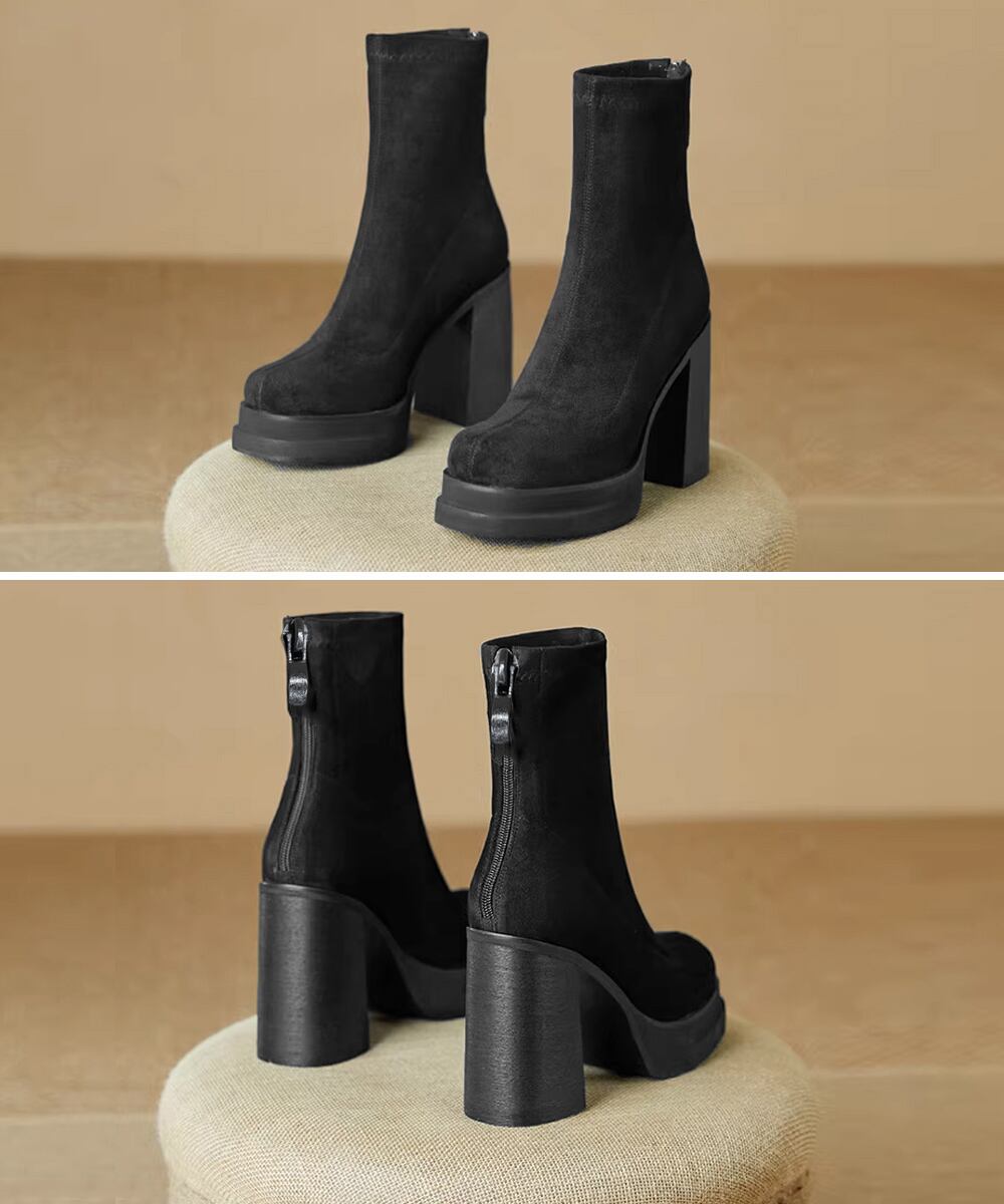 韓国 厚底ショートブーツ レディース 疲れないハイヒールスエードブーツ きれいめ 歩きやすい靴 アンクルブーツ履きやすい