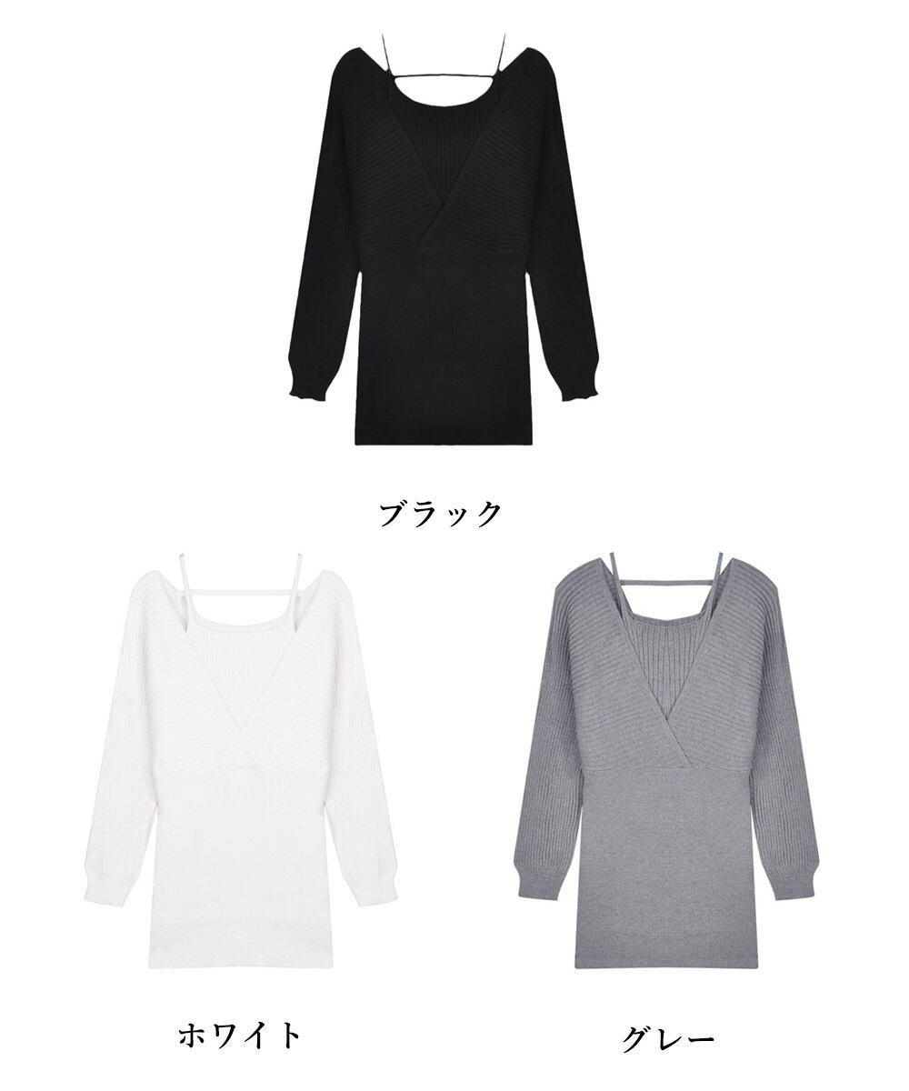 レディース おしゃれ 秋冬 ニットタイトワンピース オフショルダー レイヤード風 膝上丈ワンピ長袖 韓国ボディコンワンピ