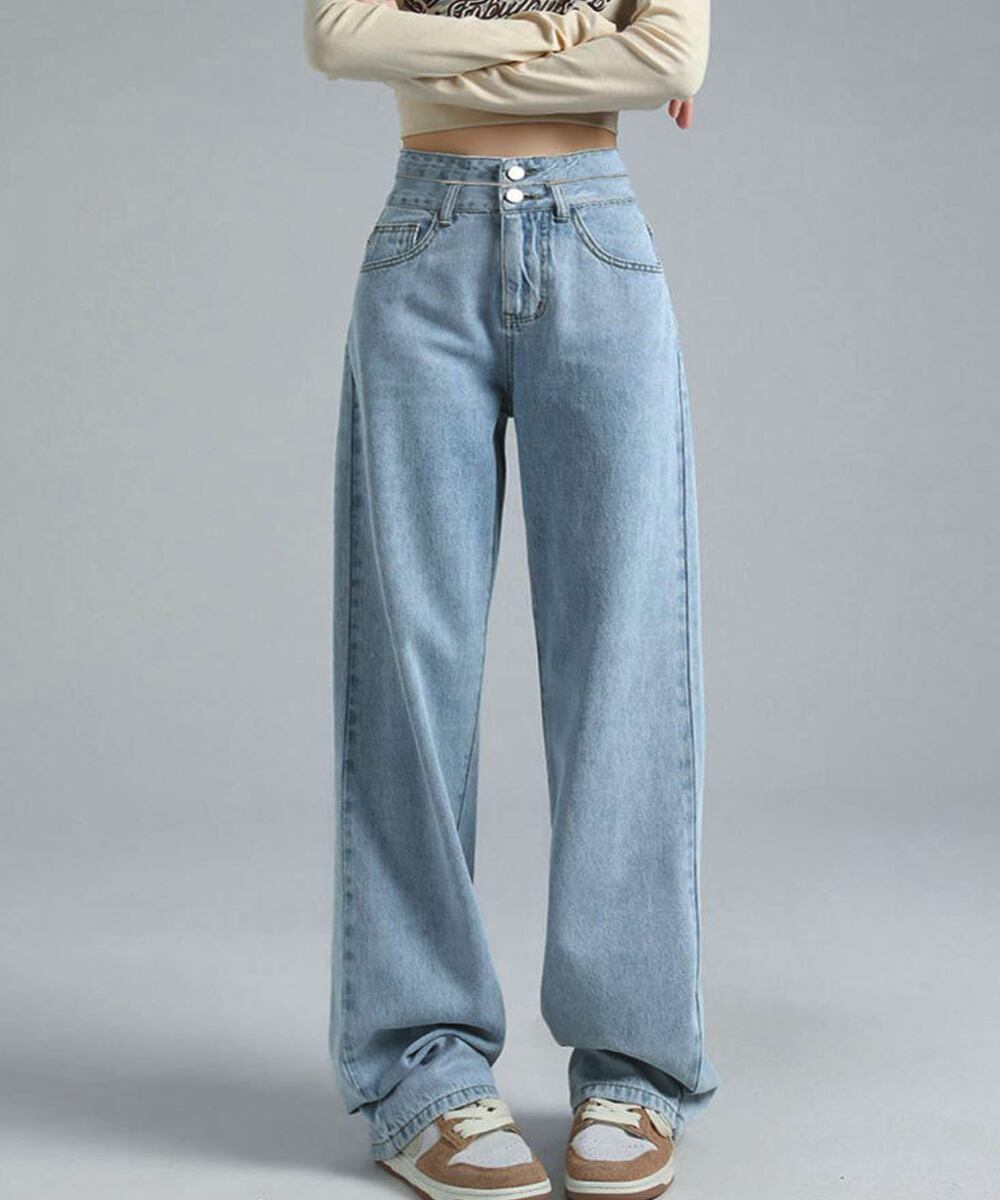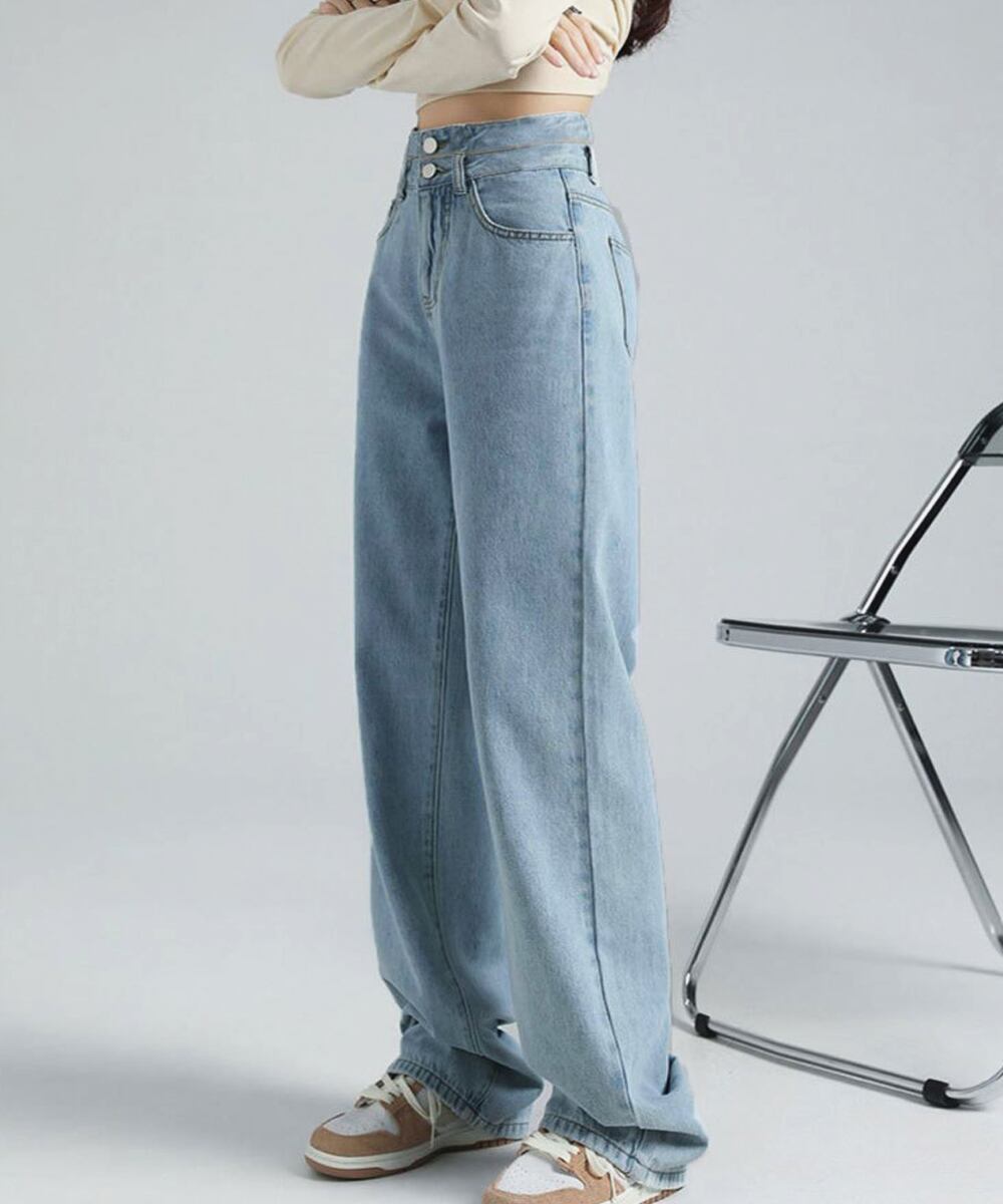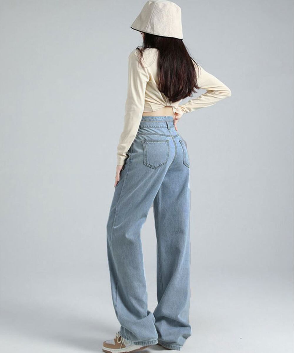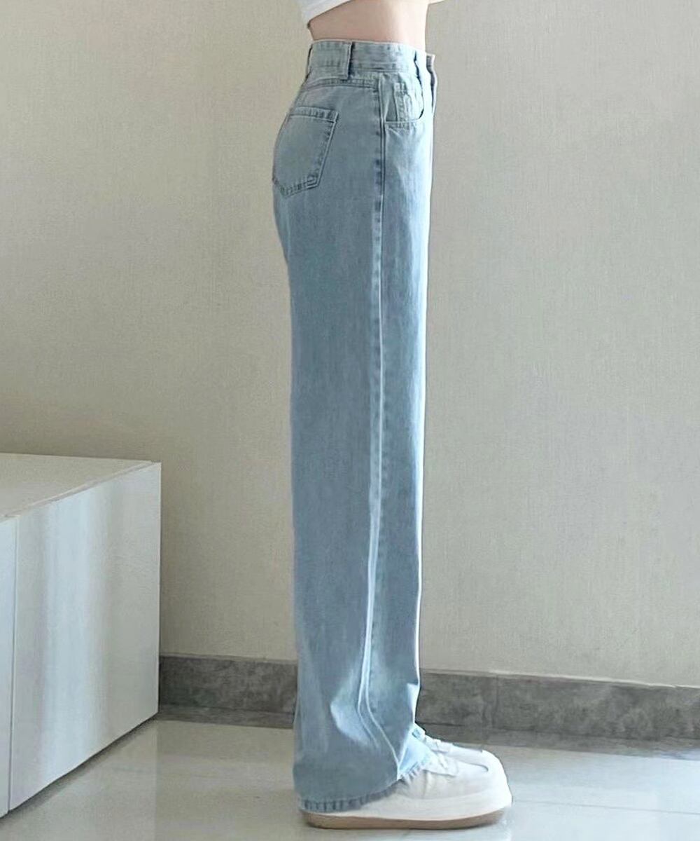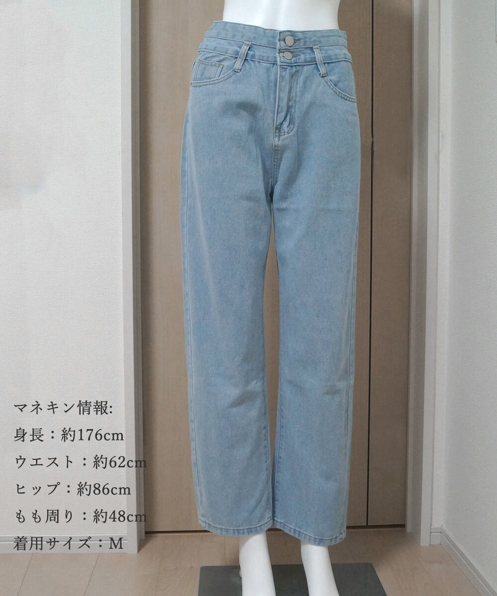 セミワイドパンツ レディース ジーパン 細見え ロングパンツ 2ボタン ズボン カジュアル 韓国ファッション