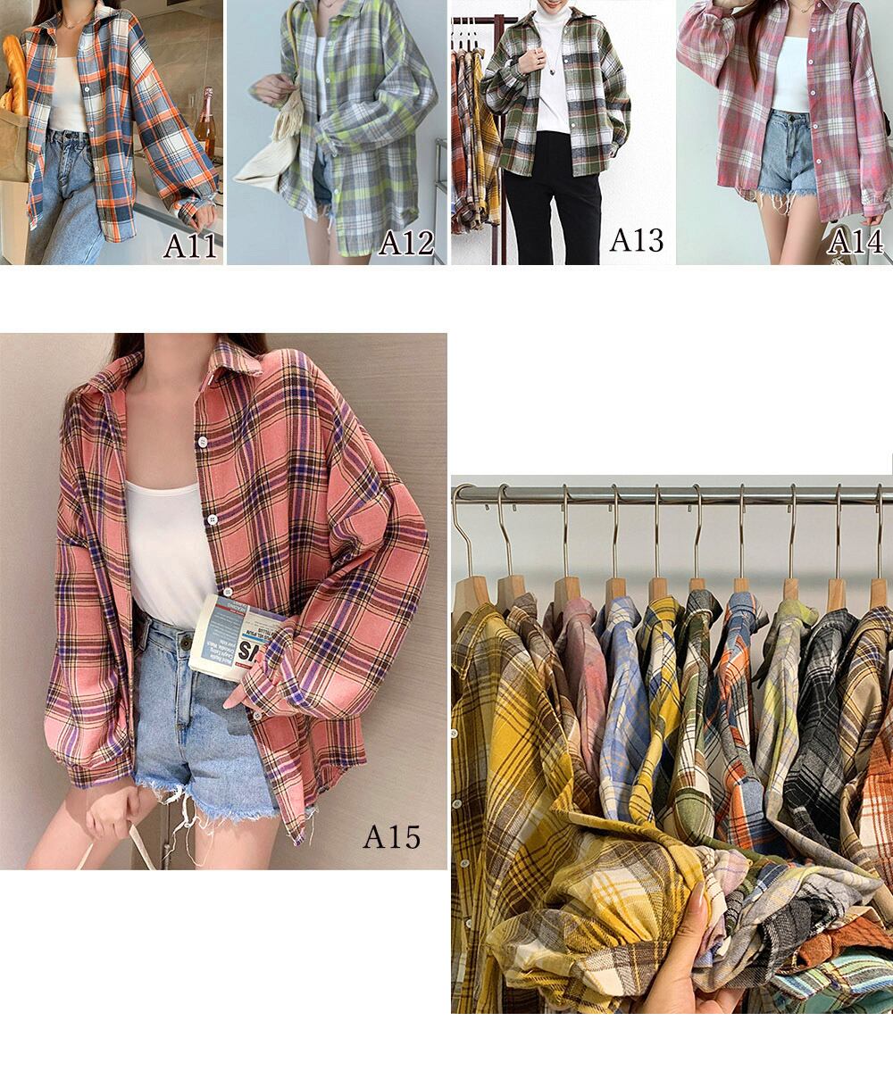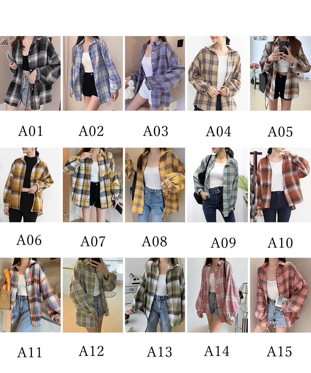 レディース おしゃれ ゆったりカラーチェックシャツ カジュアルトップス レトロ韓国ファッション 10代20代30代40代