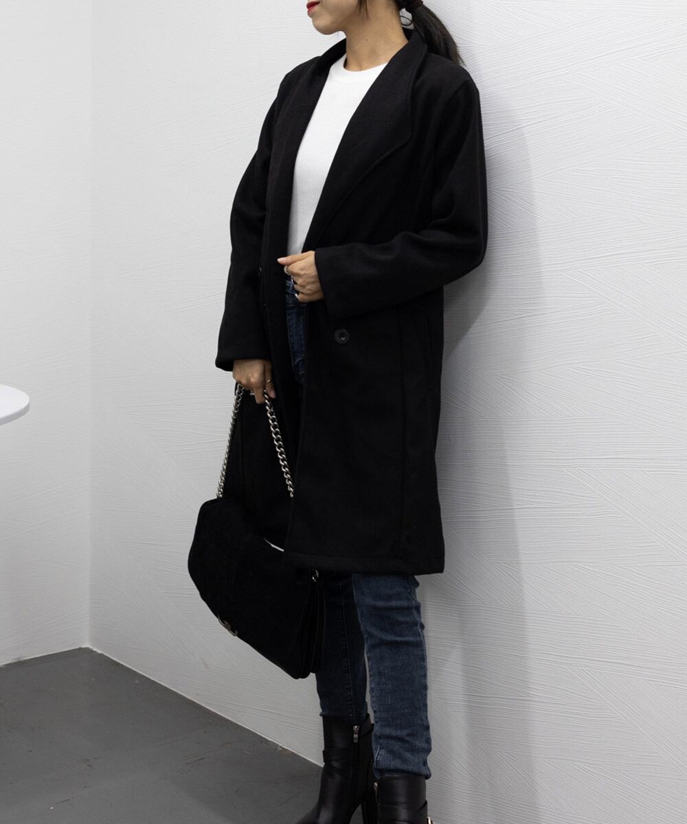 微起毛膝丈コート 春秋冬 ベーシックテーラードコート 体型カバー着やせ ミディアムコート きちんと服 30代40代 ゆる