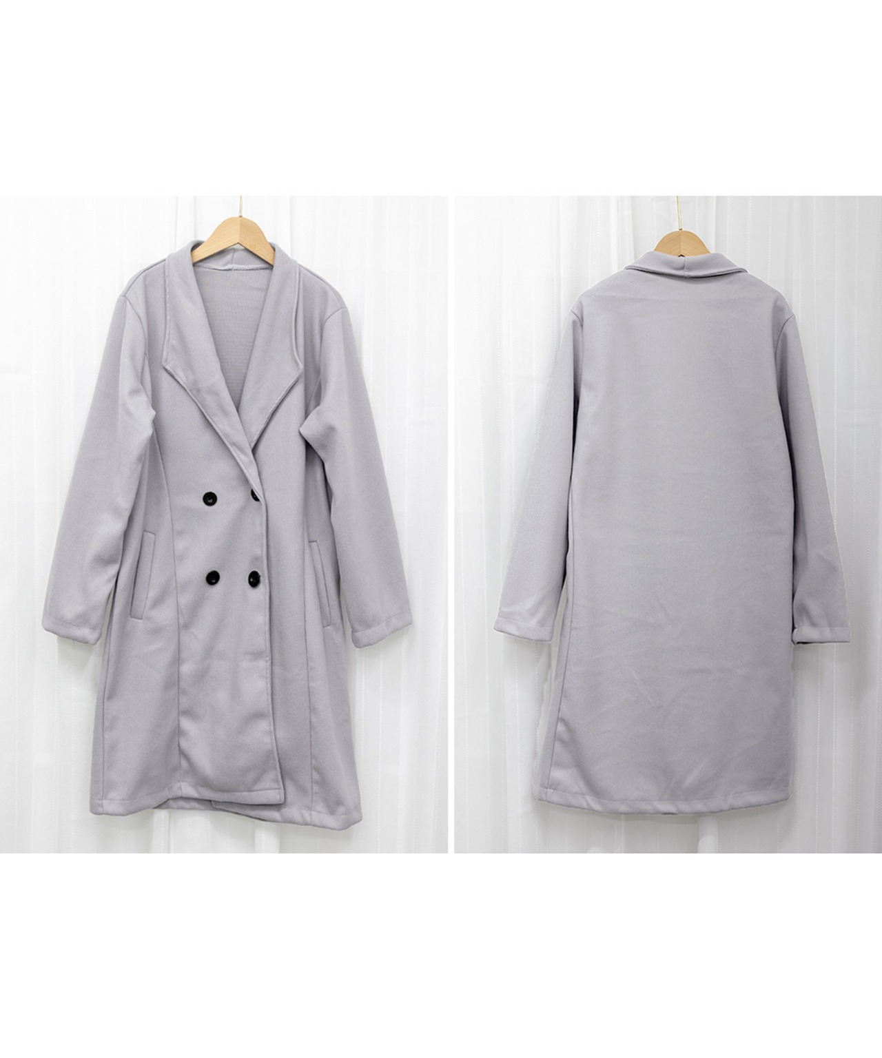 テーラード風折り襟がきちんと感抜群、ダブルブレストボタン仕様がクラシカルなレディースコート