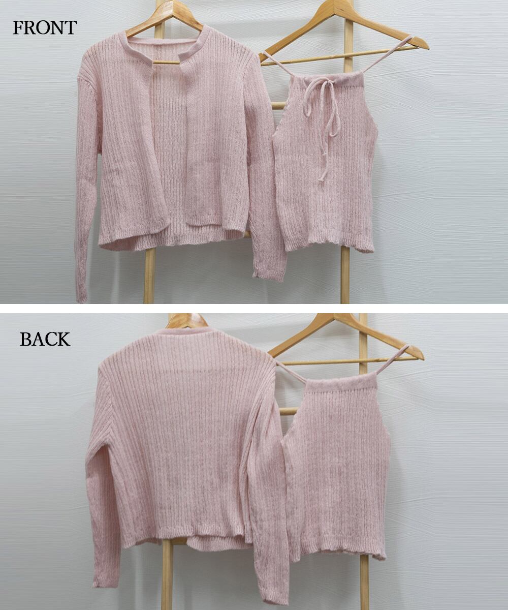 大人かわいいショートカーディガンとニットキャミソールセット 。