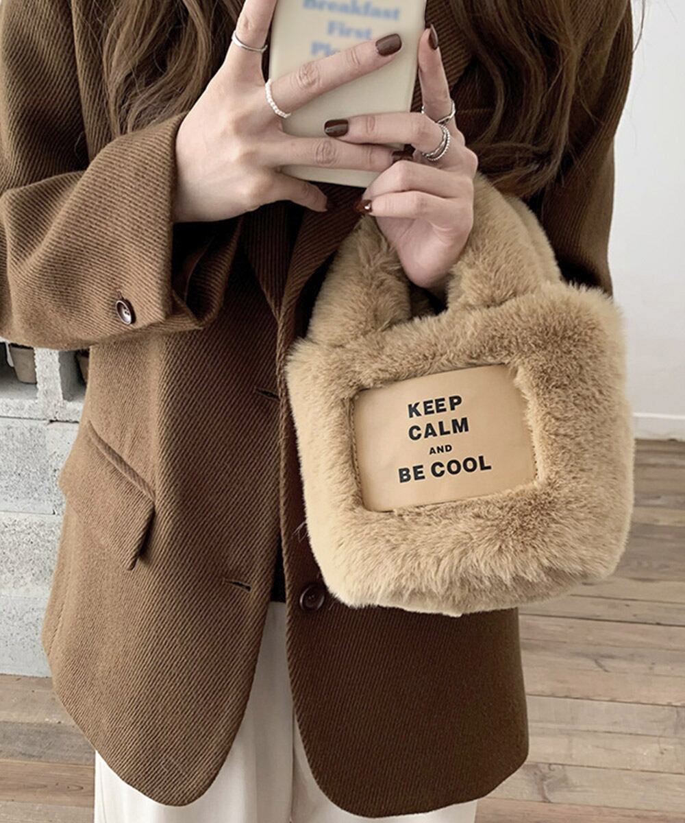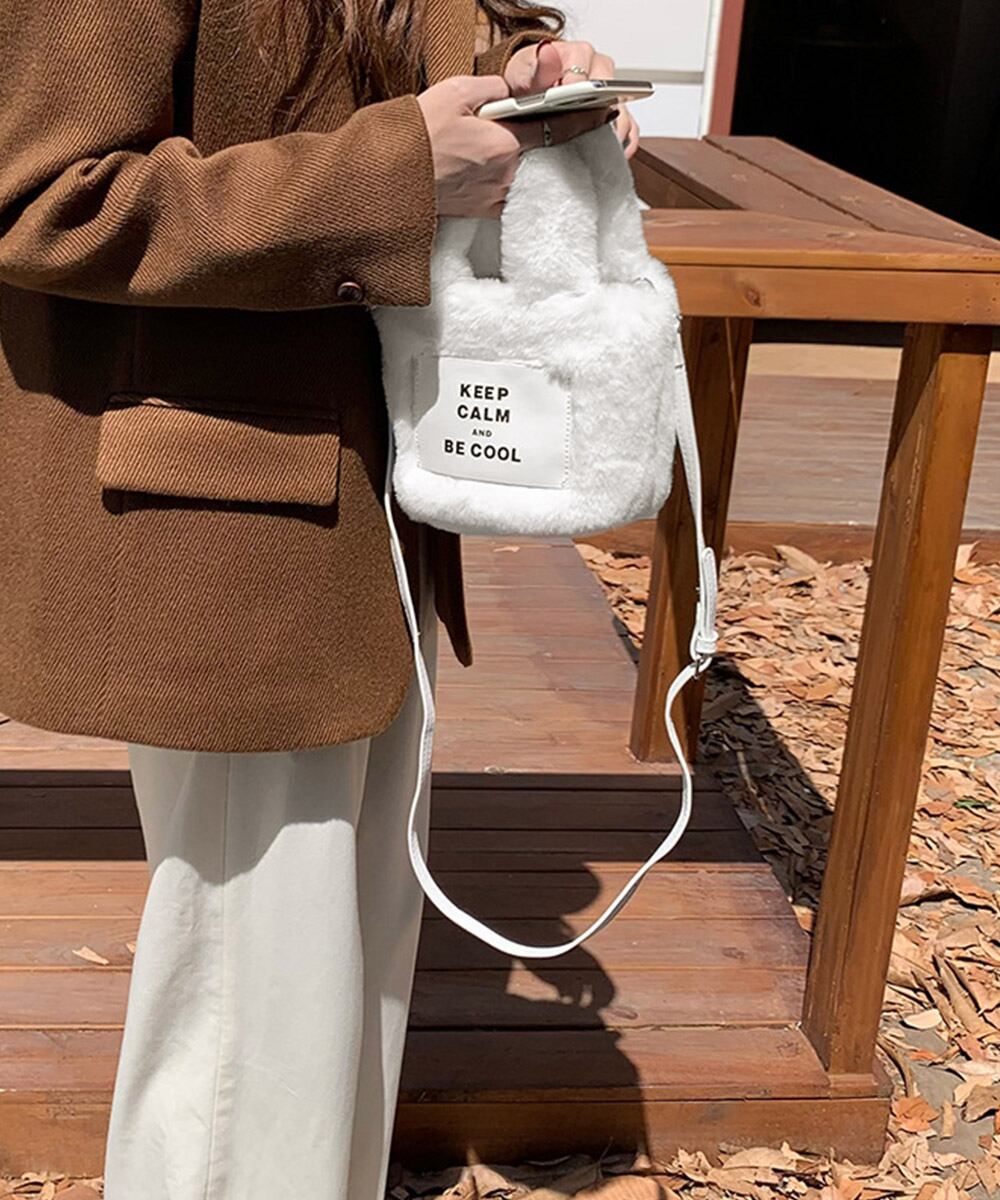やわらかな手触りのエコファーがバッグを覆い、優雅な雰囲気を演出