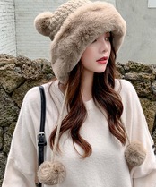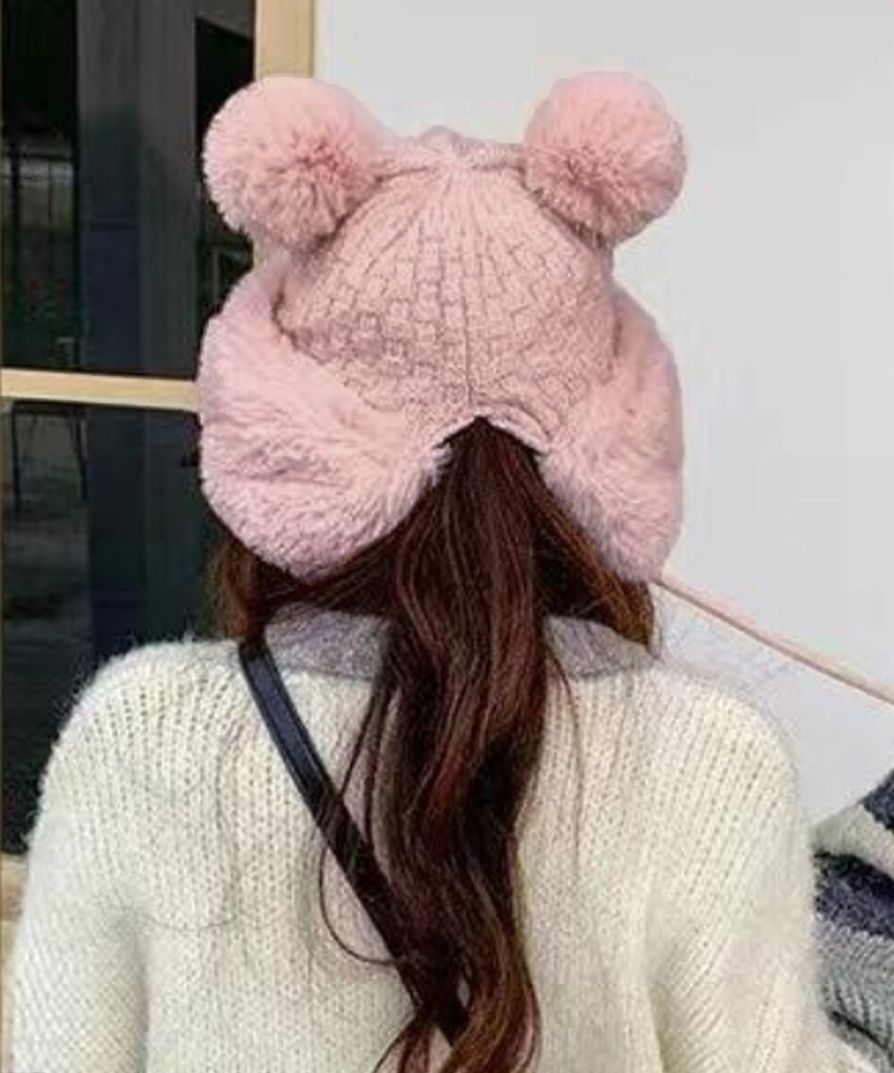 ダブルポンポンニット帽子 ファー帽子韓国