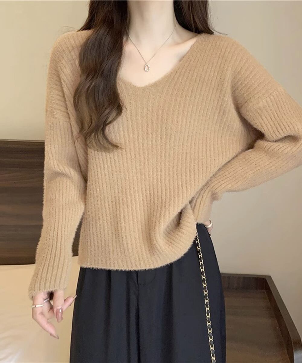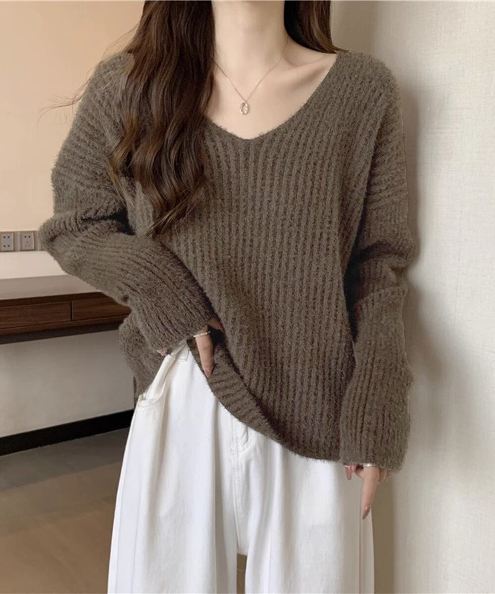 ほどよく開いたVネックが首元を綺麗に見せてくれる。
