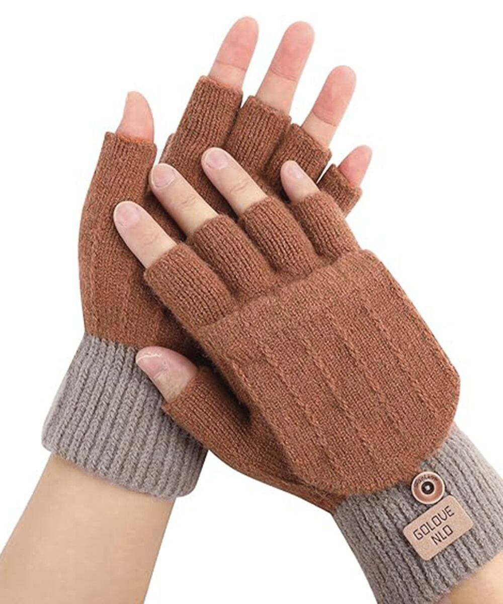 寒い時はフードをかぶせてミトンタイプに、スマホ操作や手作業の時は指切りグローブと使い分けられて便利な2way。