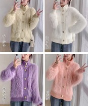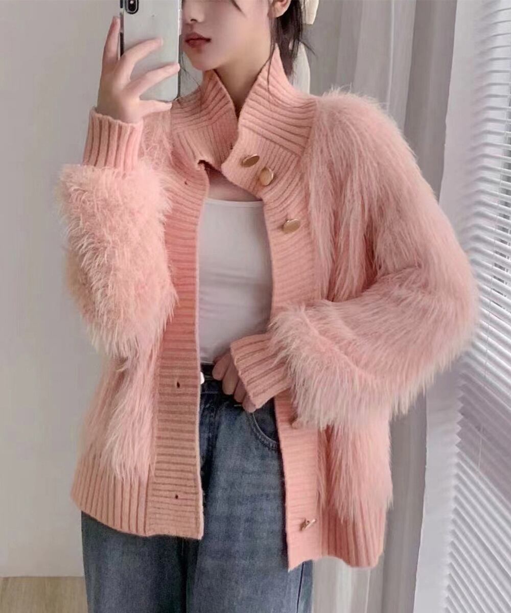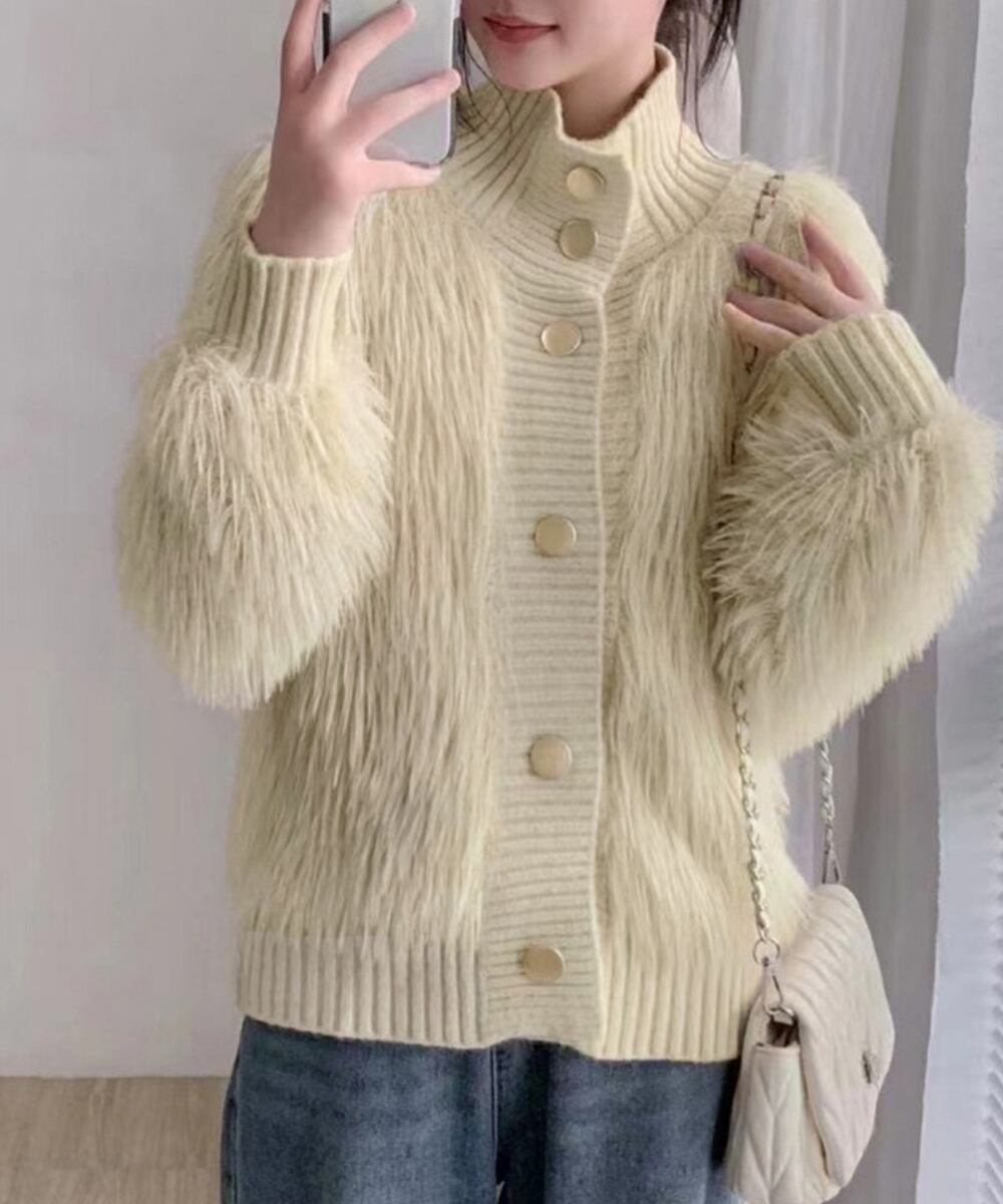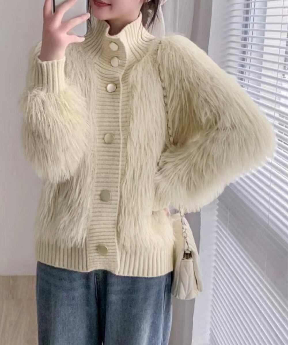 ファーカーディガン スタンドカラー 韓国