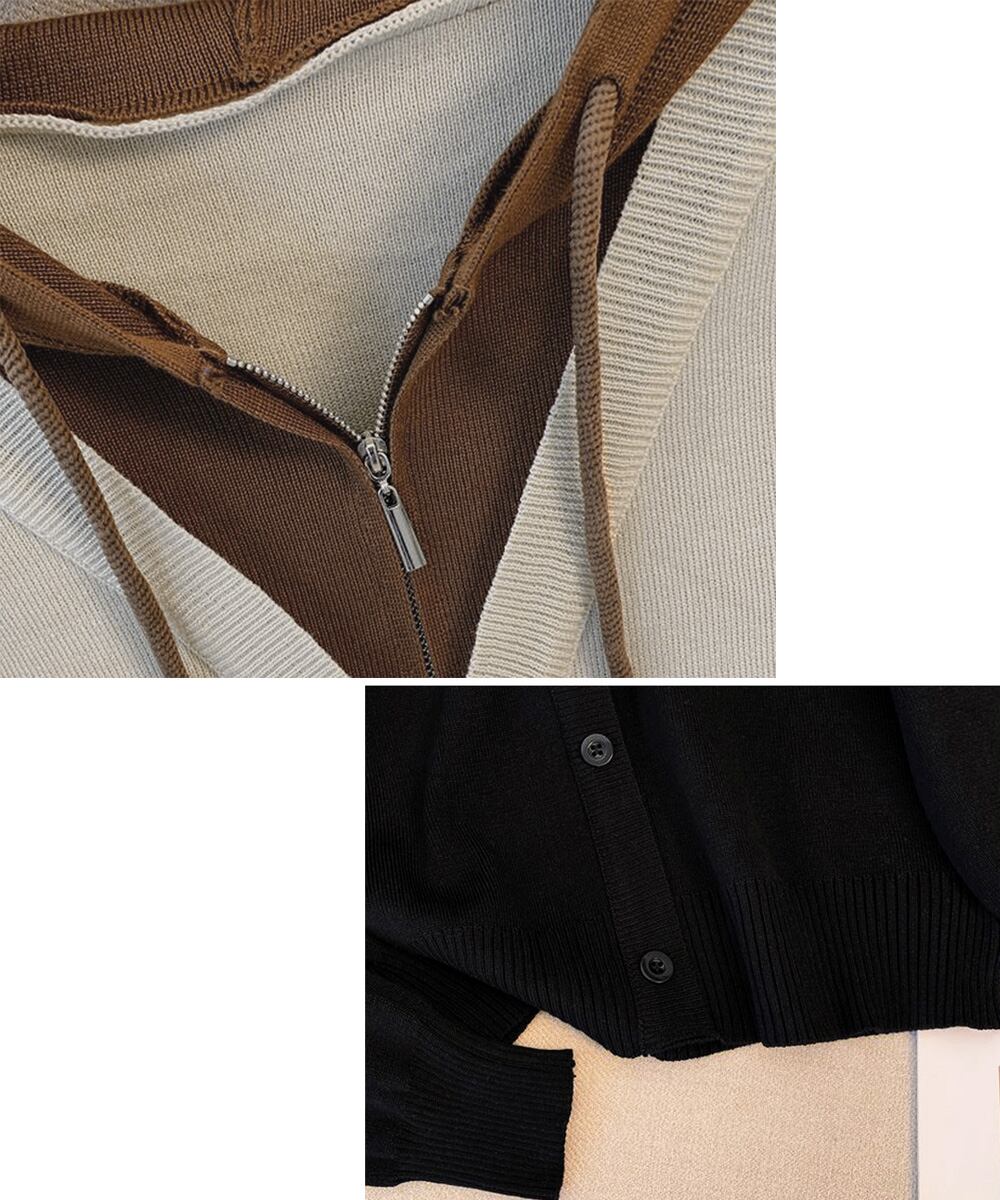 ニットトップス フード付き カジュアル 配色ニット レディース ニットソー バイカラー プルオーバー レイヤード風