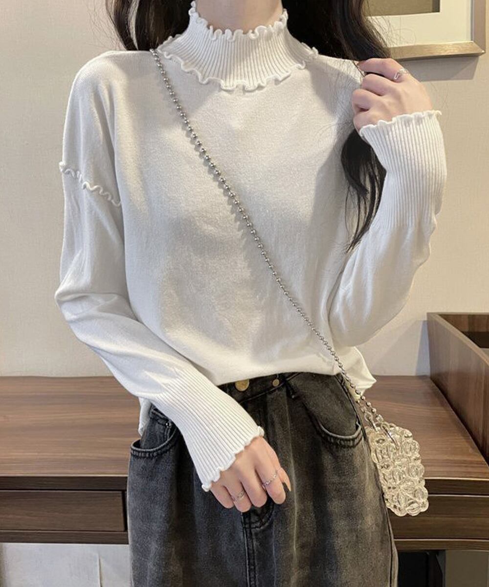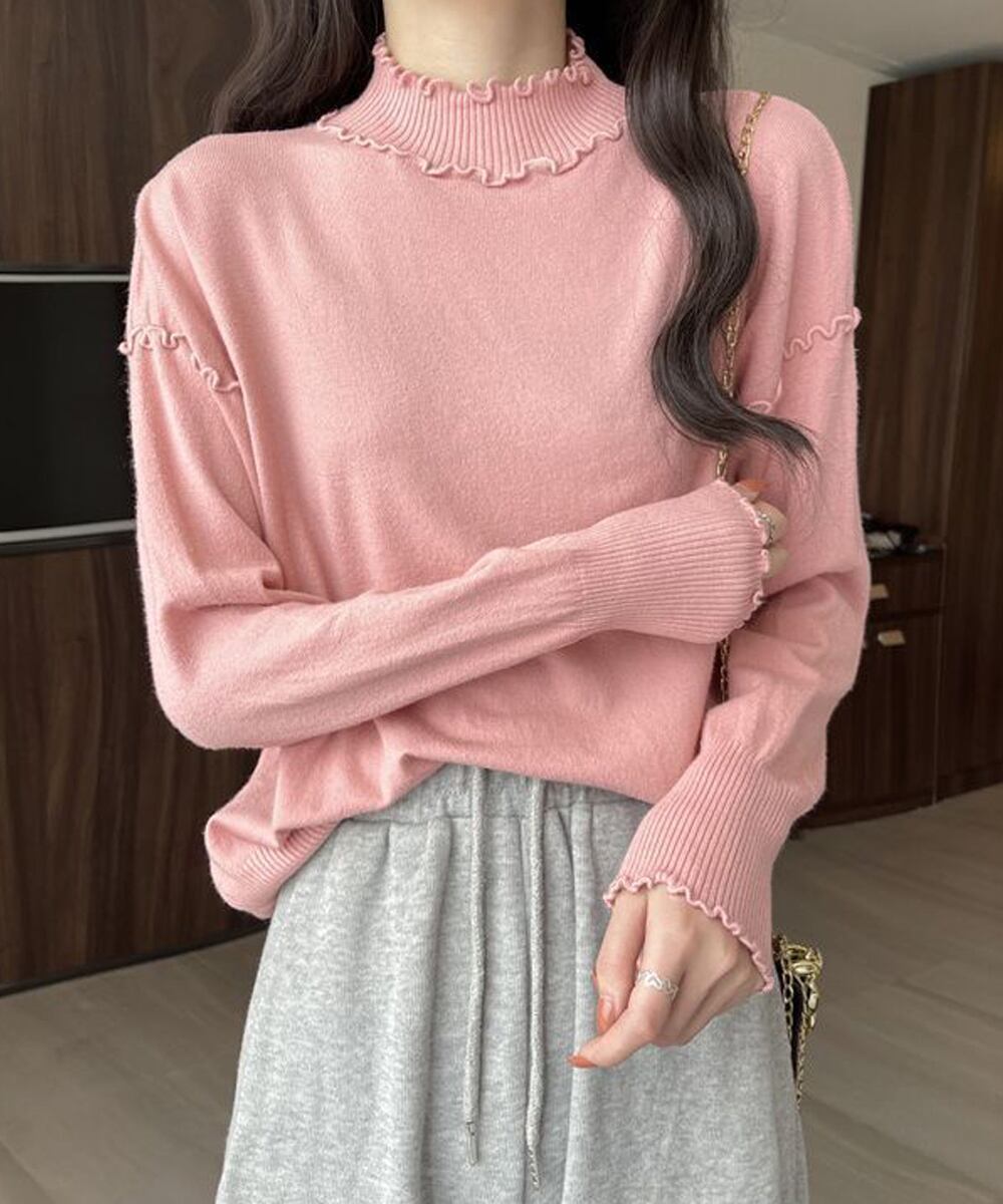 ニットプルオーバー ストレッチ 普段着 ニットウェア 大人秋服 カジュアルニットソー ハーフタートルネックニットインナー