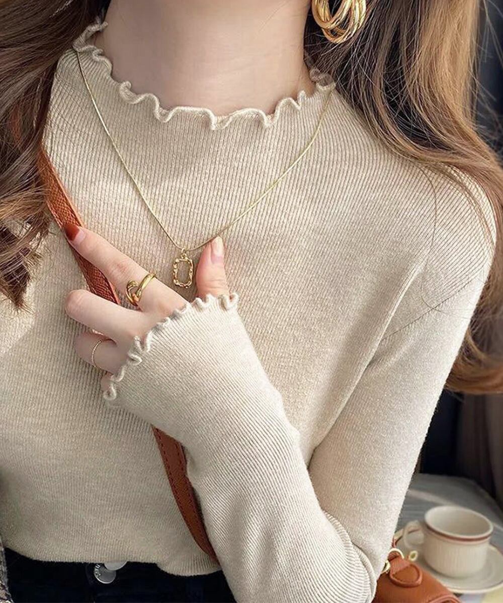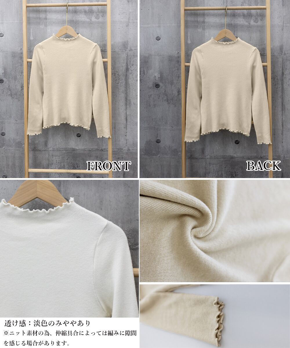 伸びが良く肌ざわり柔らかなメロウフリルニットトップス