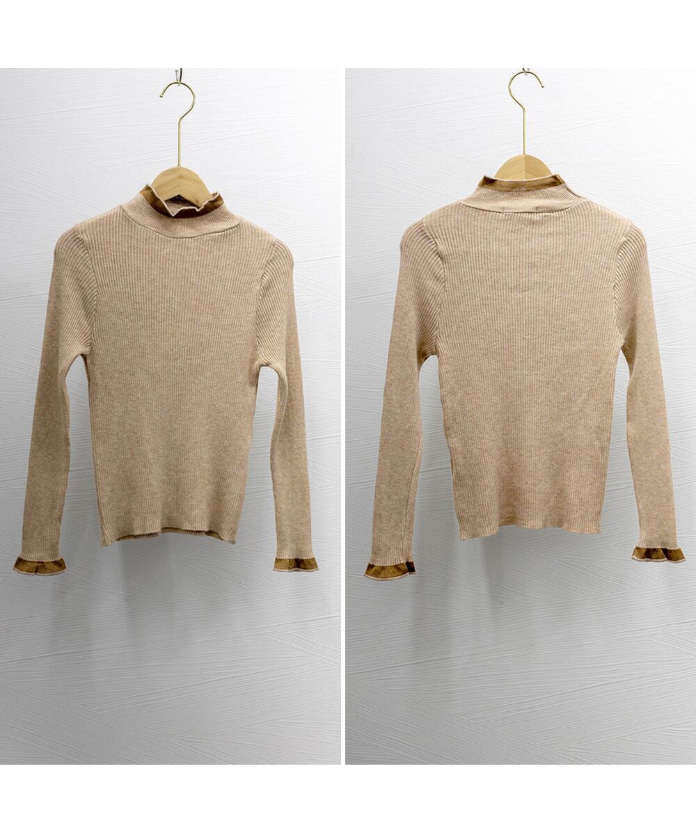 ベーシック ニットインナー 着回しニット 重ね着 レイヤード フェミニン 長袖 ニットプルオーバーシンプル 無地 秋冬物