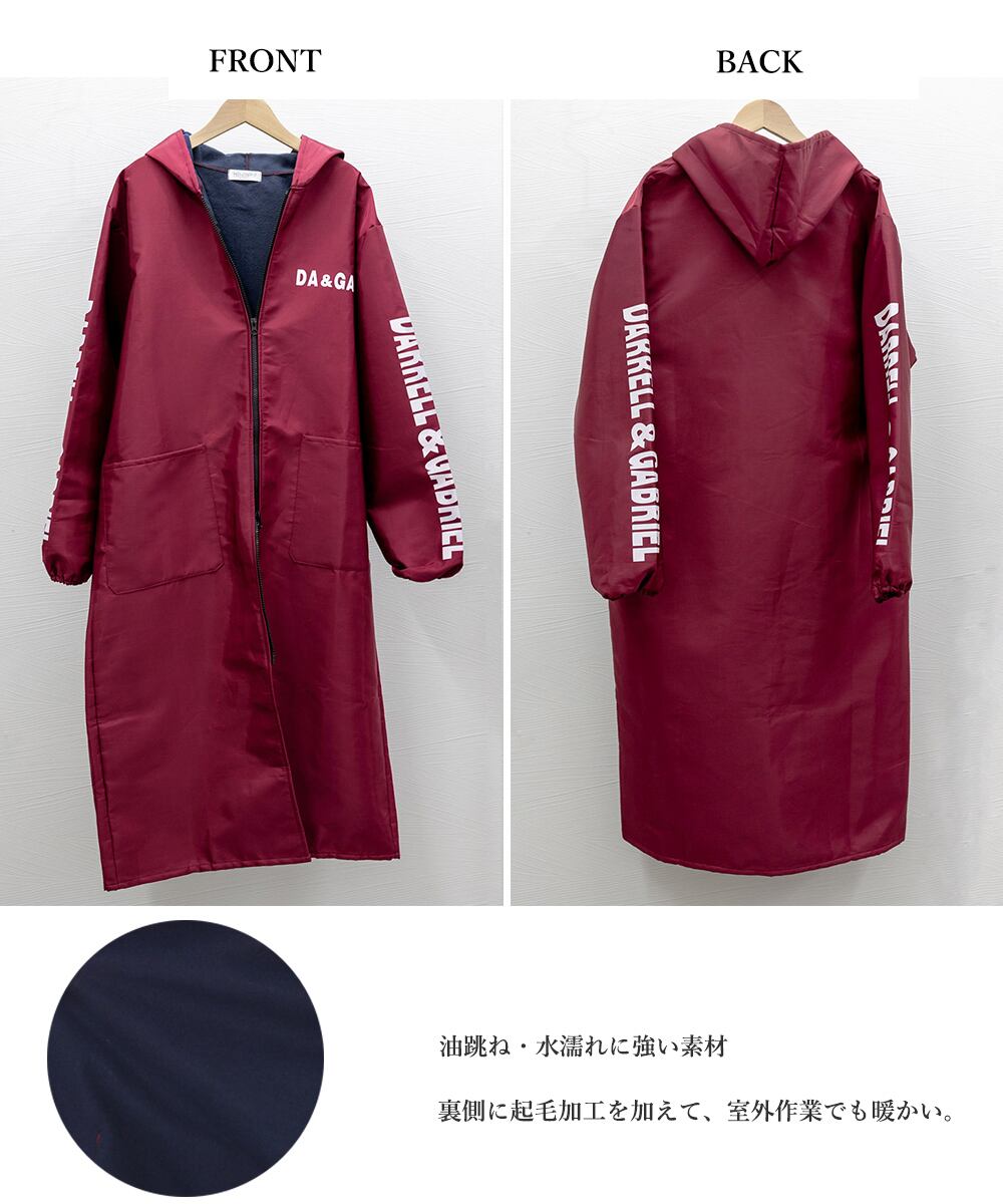 既成概念を超えて進化したフード付きロング丈コート風の袖付きエプロン