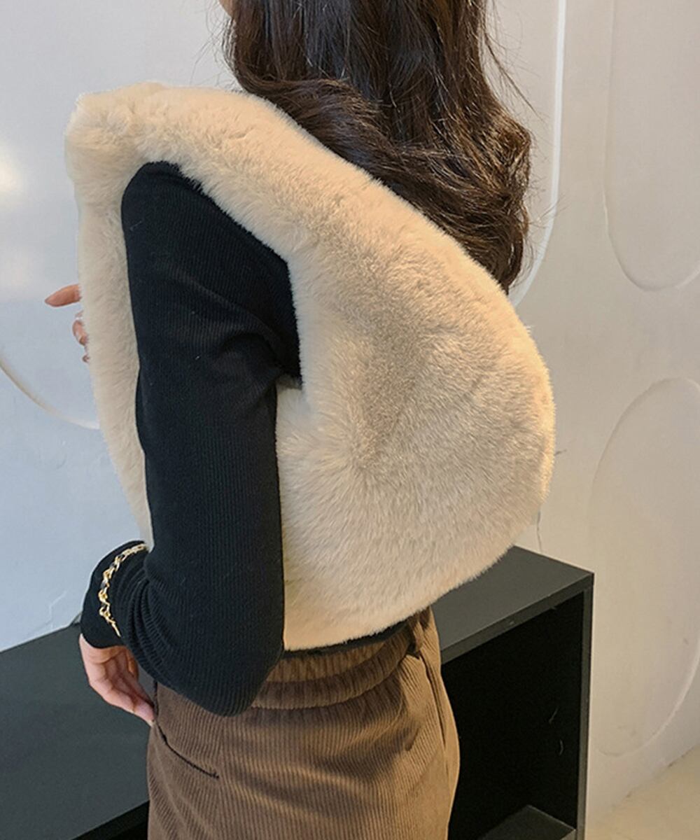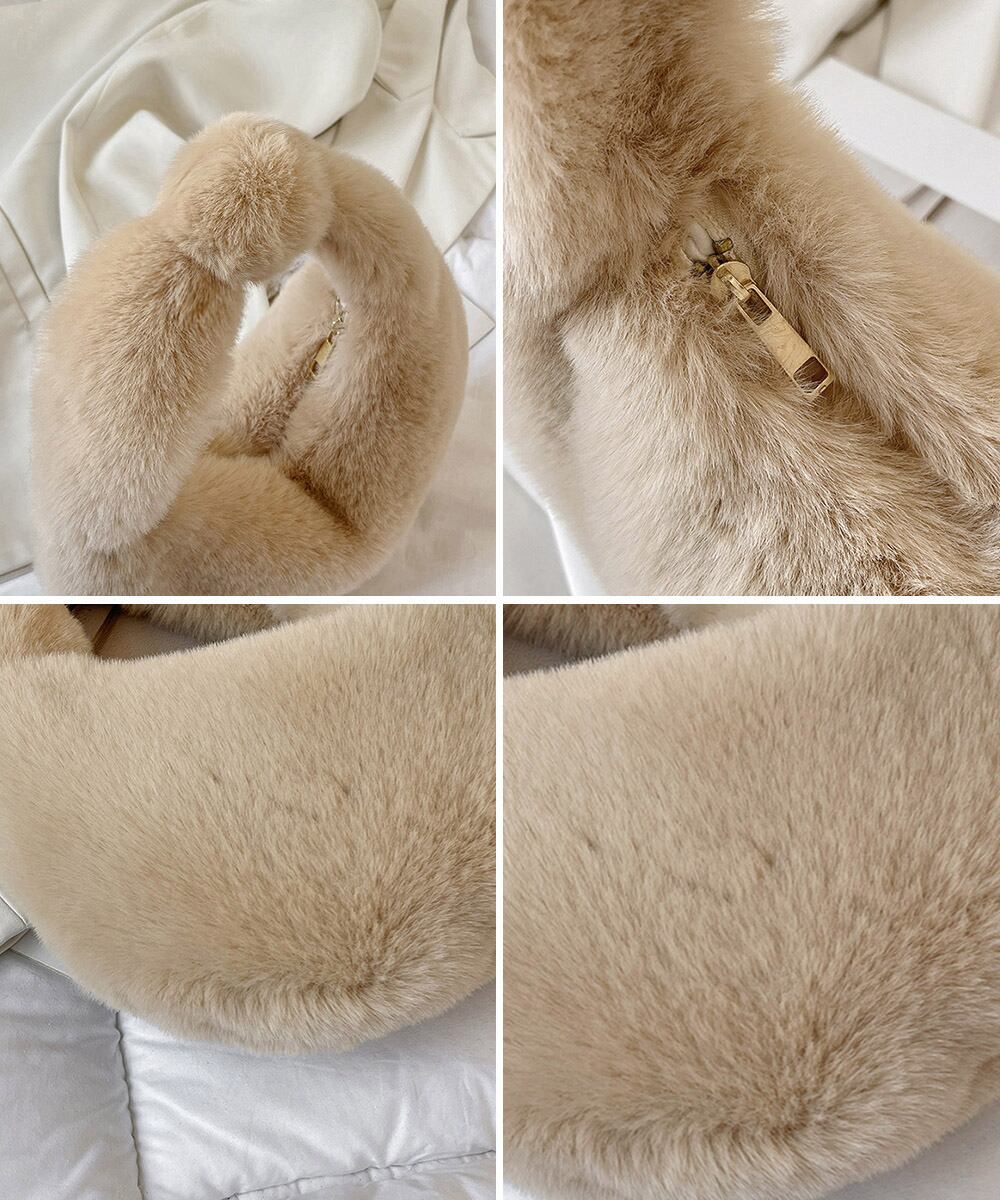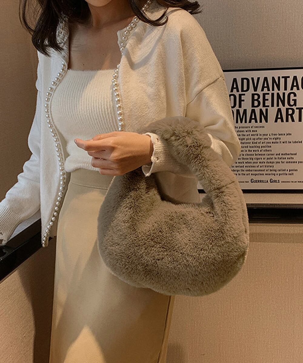 フェイクファーの手触りとモコモコ感が、バッグに遊び心と可愛らしさをプラス