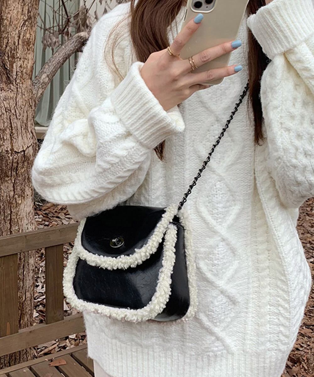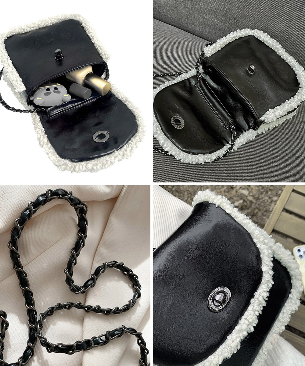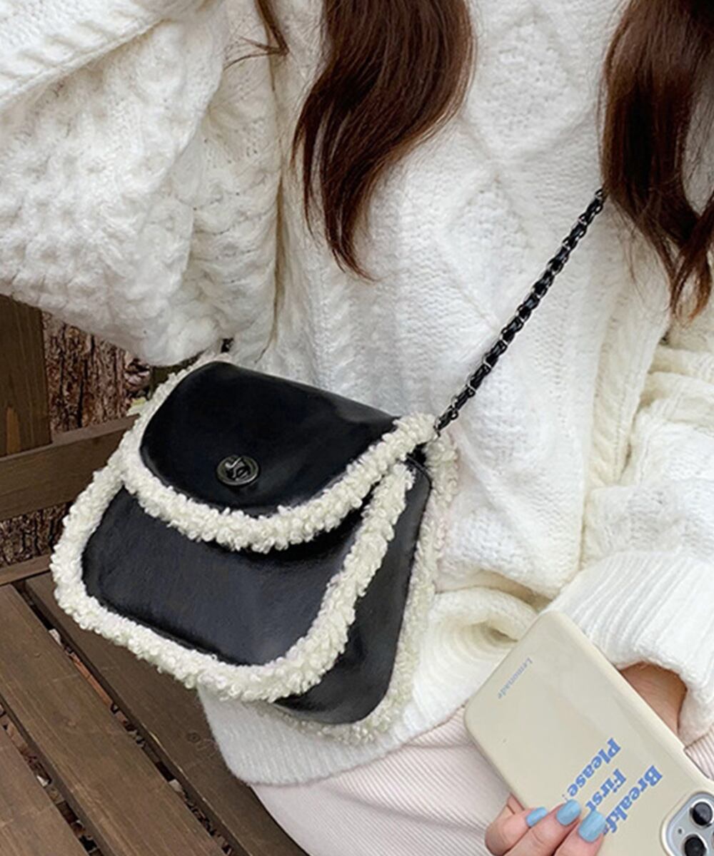 PUレザーショルダーバッグ レディース 斜めがけ 肩掛けバッグ 可愛い2wayバッグ 秋冬 小さめモコモコバッグ 韓国風
