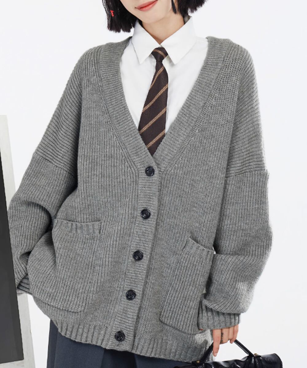 合わせるインナー次第で色々な着こなしを楽しめるニットカーディガン