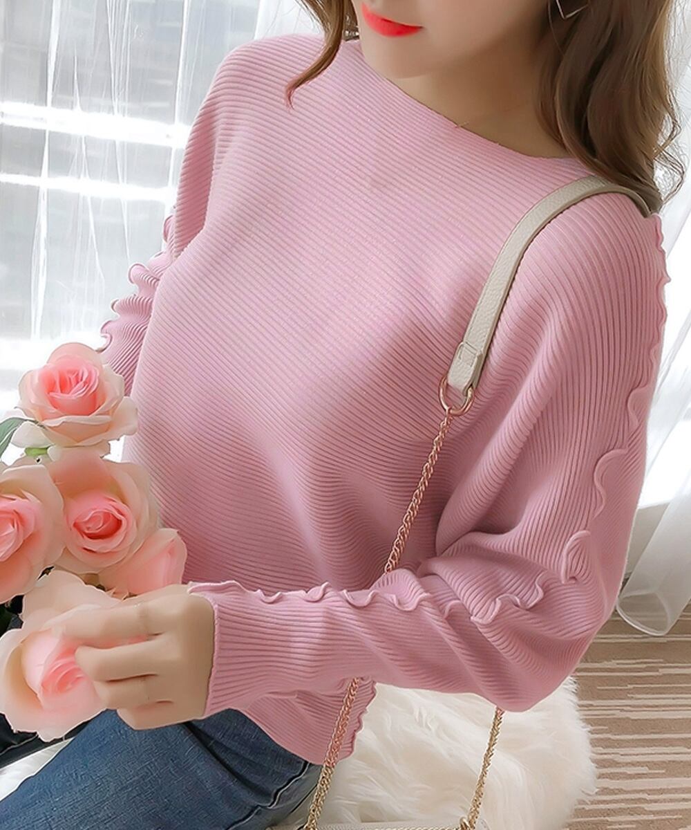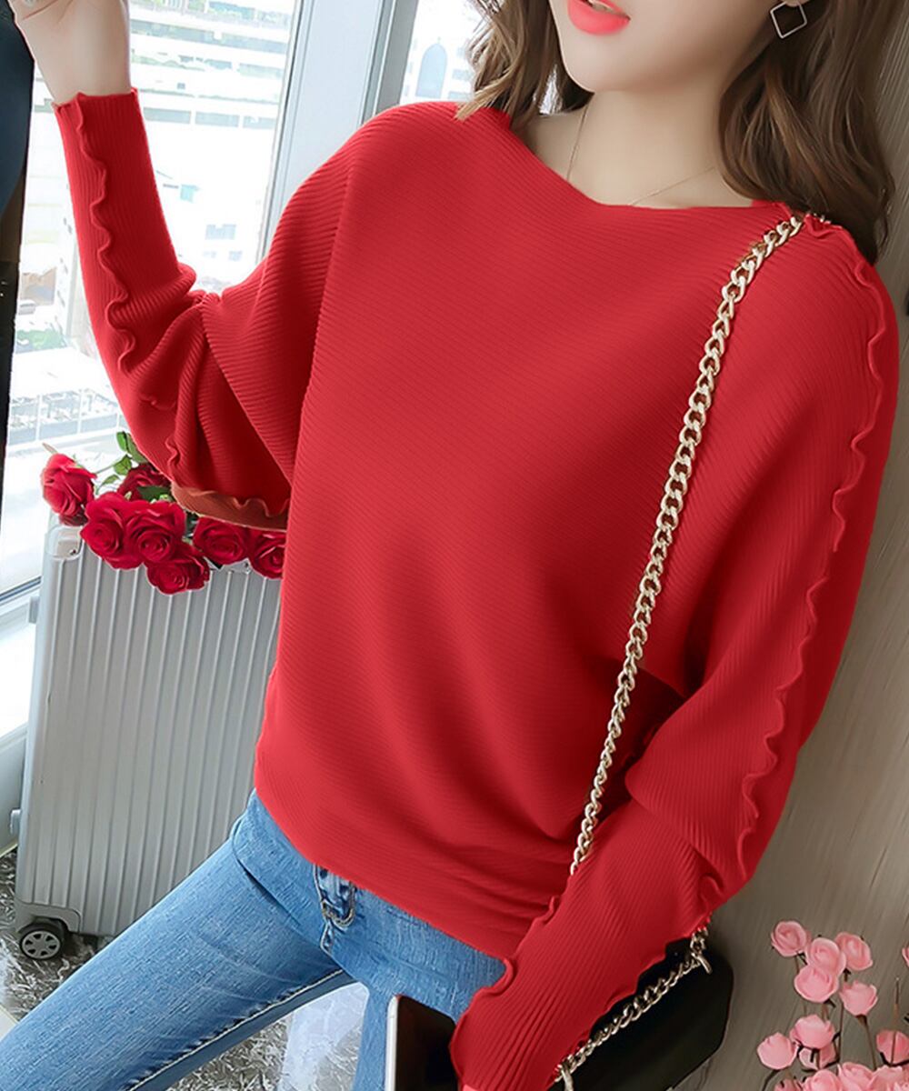 柔らかく優しい肌ざわりに仕上げたドルマンスリーブニットトップス