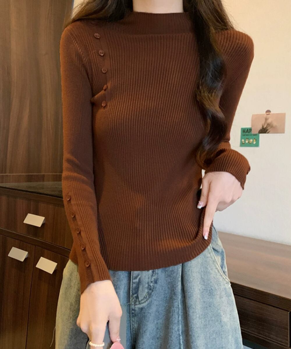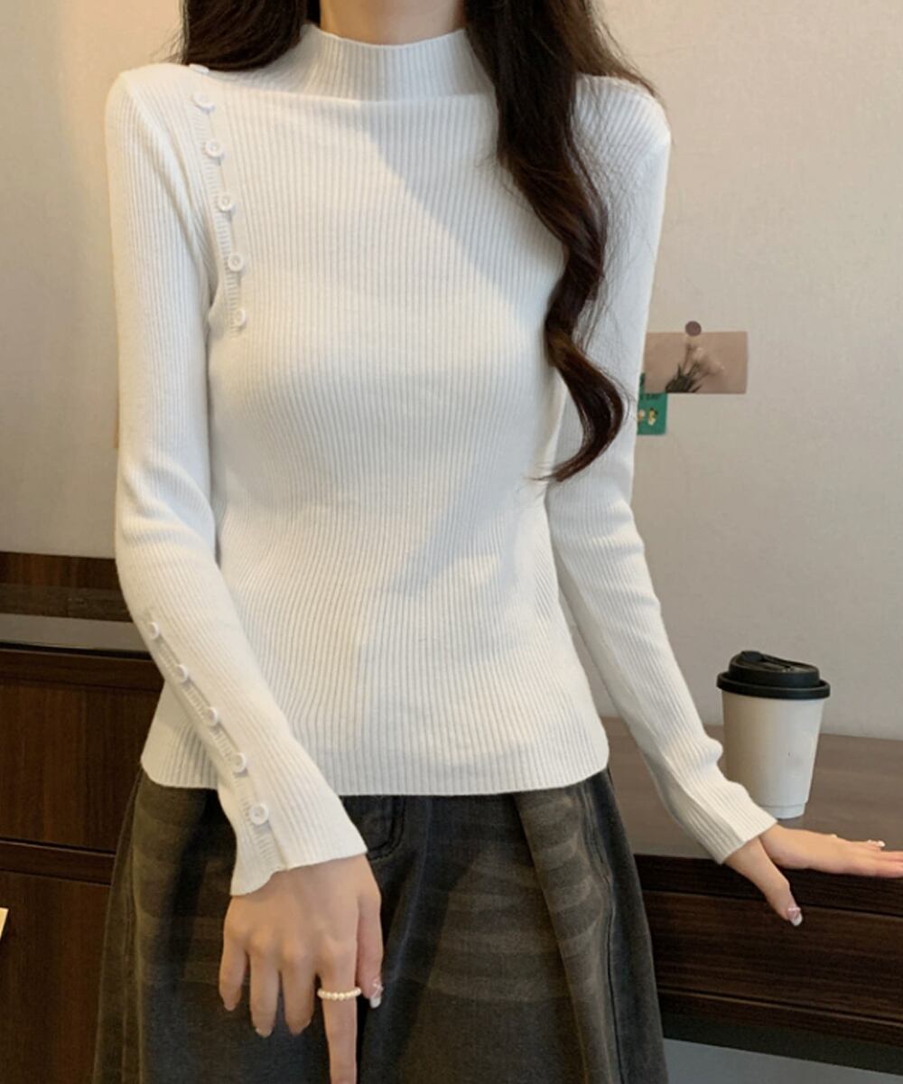 レディース プチハイネック ニットプルオーバー 細身 着回しニットウェア カジュアル タイトトップス 春秋ニットインナー