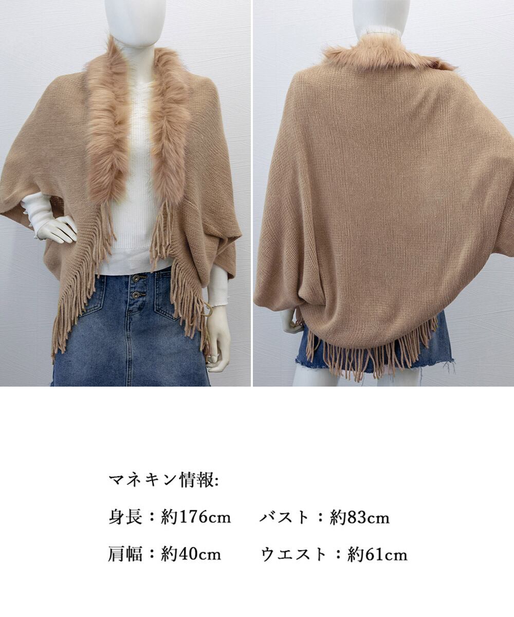 着丈:最長約80cm(フリンジを含む) ゆき:約68cm 胸囲:フリー