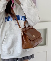艶やかなフェイクレザーを使用、重厚感と高級感が溢れるショルダー付きトートバッグ