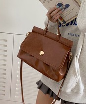 斜めがけ クロスボディバッグ ファスナー付き 合皮レザーバッグ 仕切れ付き マチ広 通勤通学 ヴィンテージ 手提げバッグ