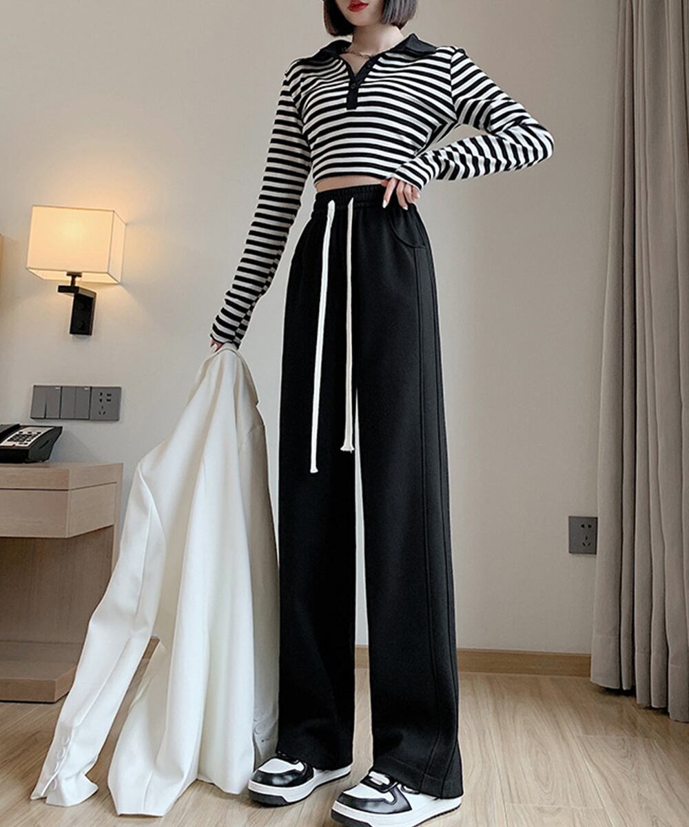脚長見せ パンツ黒 着やせボトムス韓国 無地パンツ 細見え
