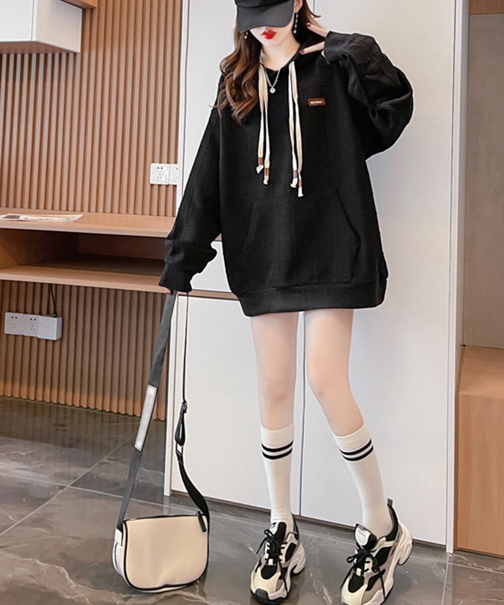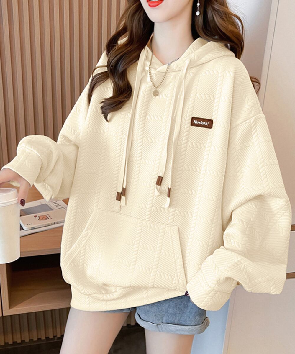 体型カバートップス レディース ゆったり 長袖プルオーバー おしゃれ 型押しロング丈スウェット カジュアル大人可愛い春秋