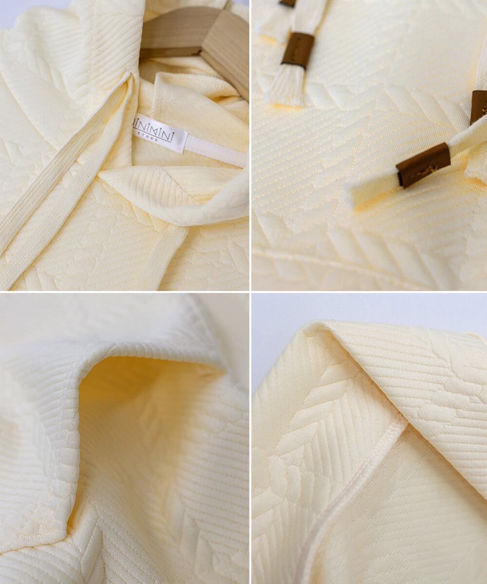 肩を落としてヒップまで隠して女性らしい華奢感を強調、体型カバーしつつ着やせ