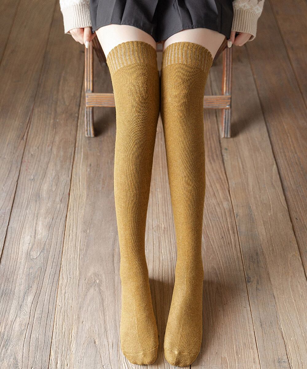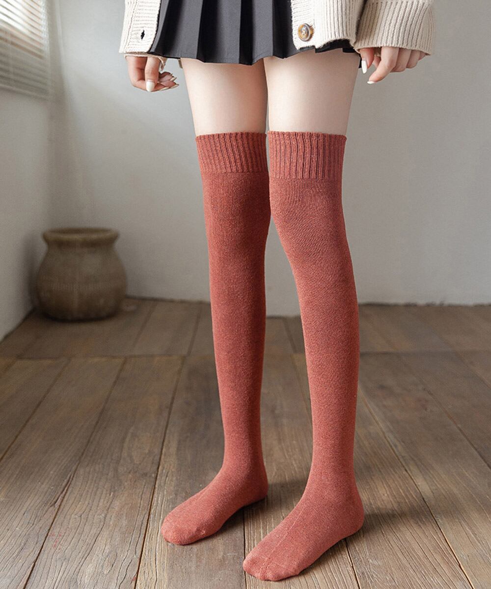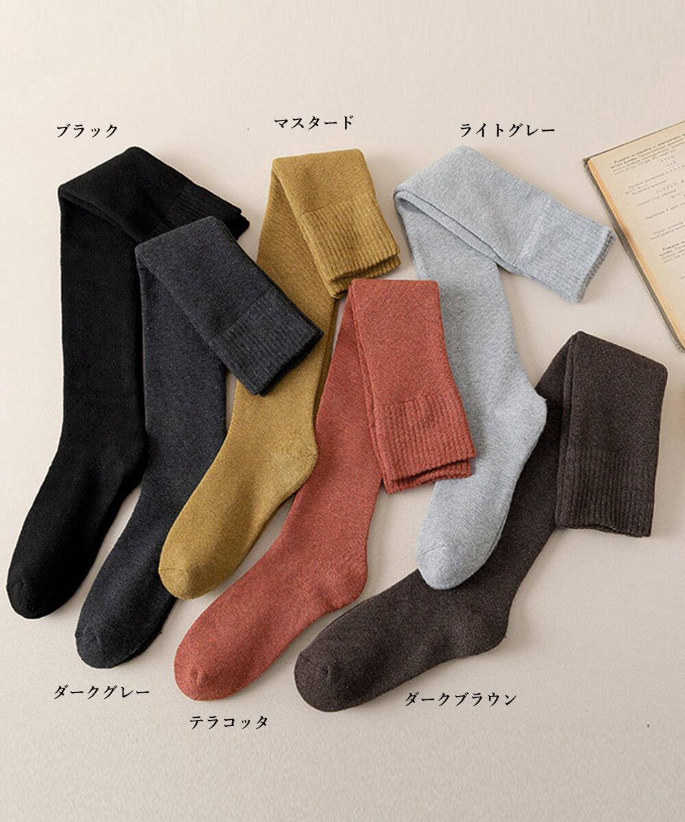レディース 暖かいソックス 無地 6色展開 カラバリ オーバーニー スクール ロング丈 通学 おしゃれ ルームソックス