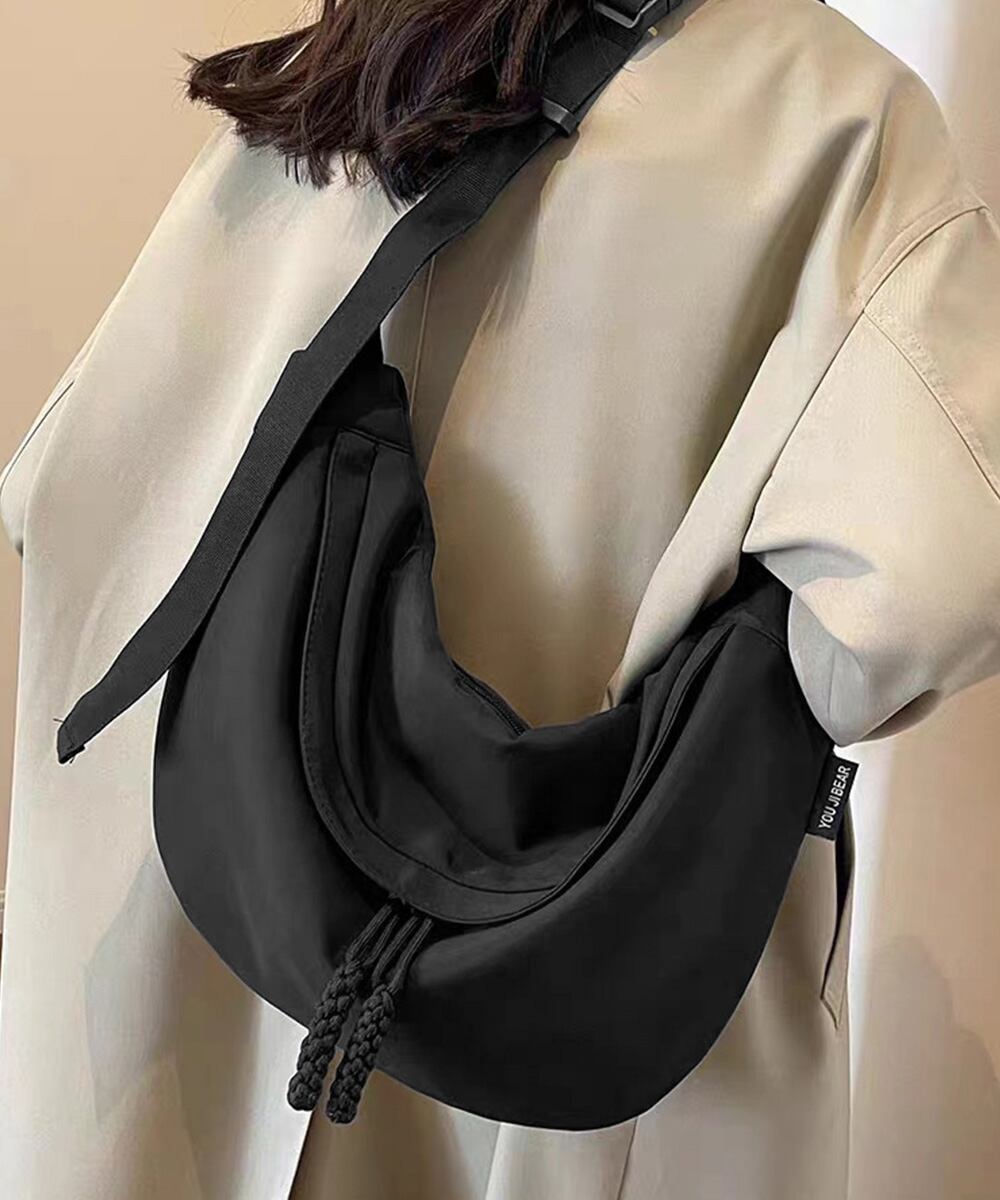体にフィットする形の三日月シルエットの韓国っぽショルダーバッグ