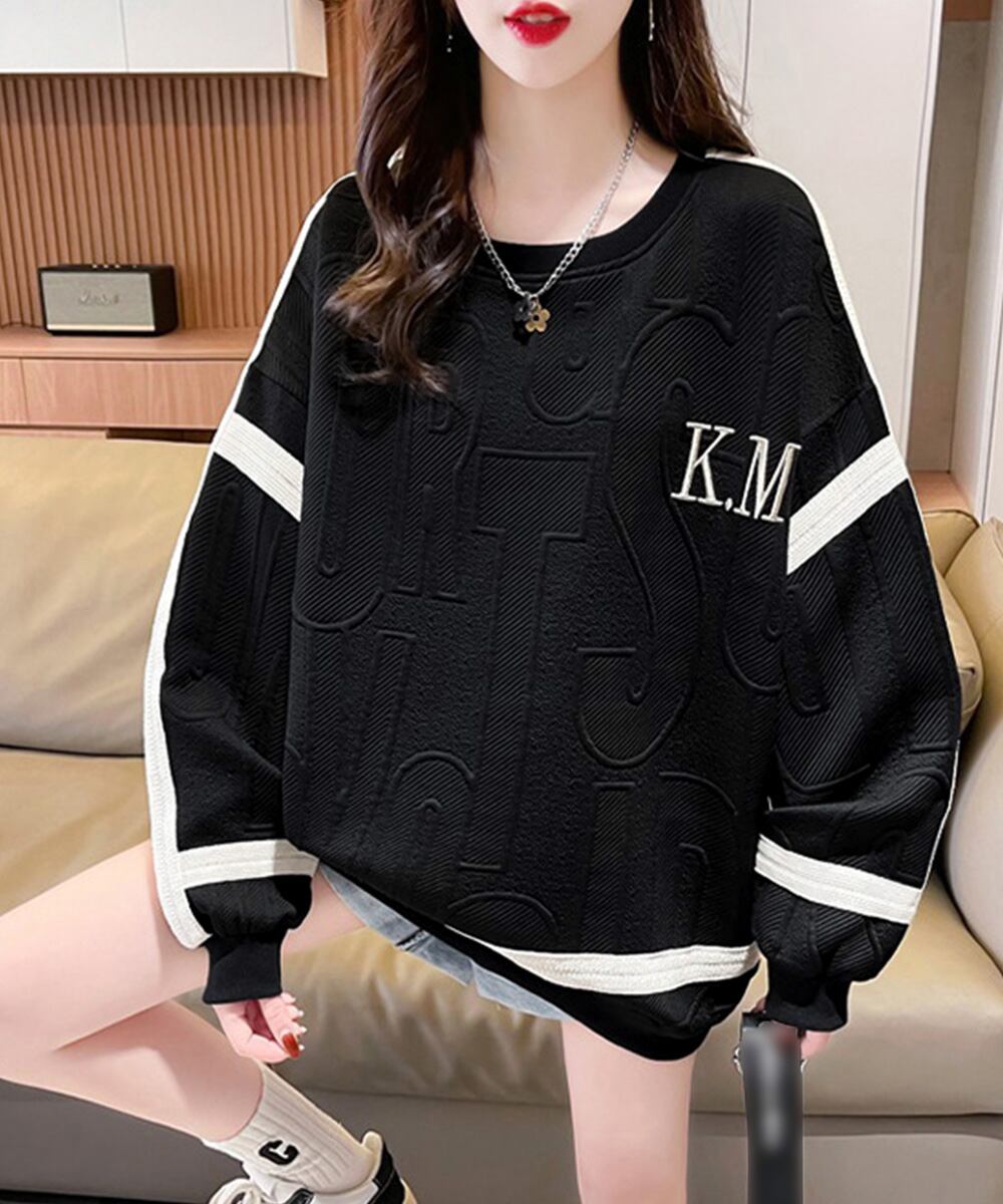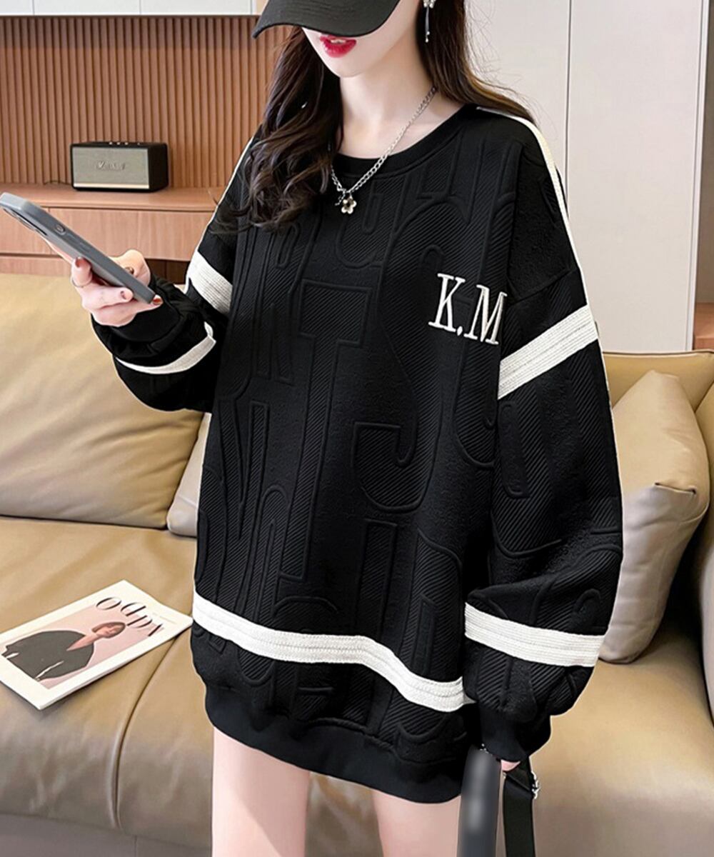 立体ロゴデザインがスタイリッシュな韓国風長袖トレーナー