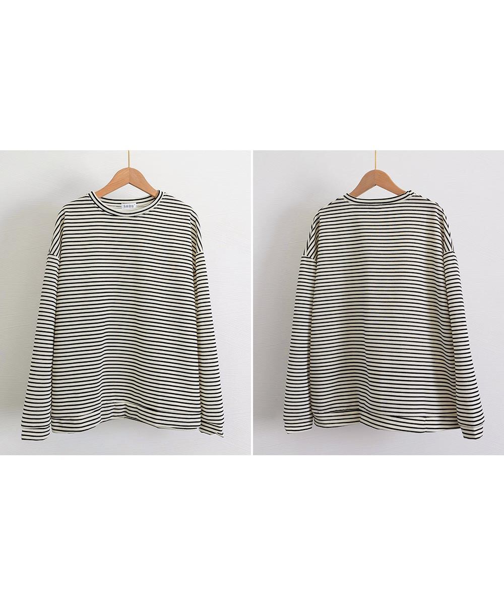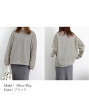 抜け感のあるシルエット、細めのボーダー柄で大人のカジュアルスタイルにマッチするカットソー