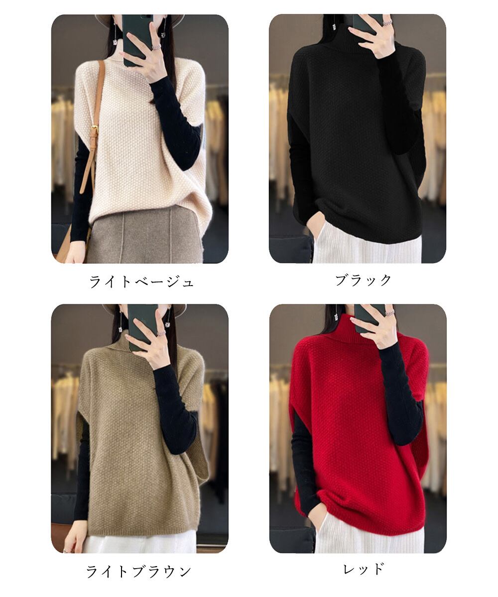 ニットトップス ノースリーブ 体型カバー ハイネックニット ゆったり レイヤード ニットジレ 重ね着ニットカットソー