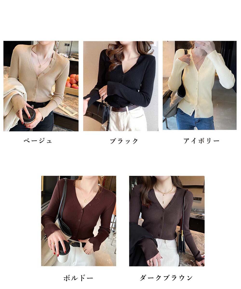 レディース 無地 前開き カーディガン 長袖 秋冬 オフィスカジュアル 女性 キレイめ タイトニット 韓国風 通勤OL