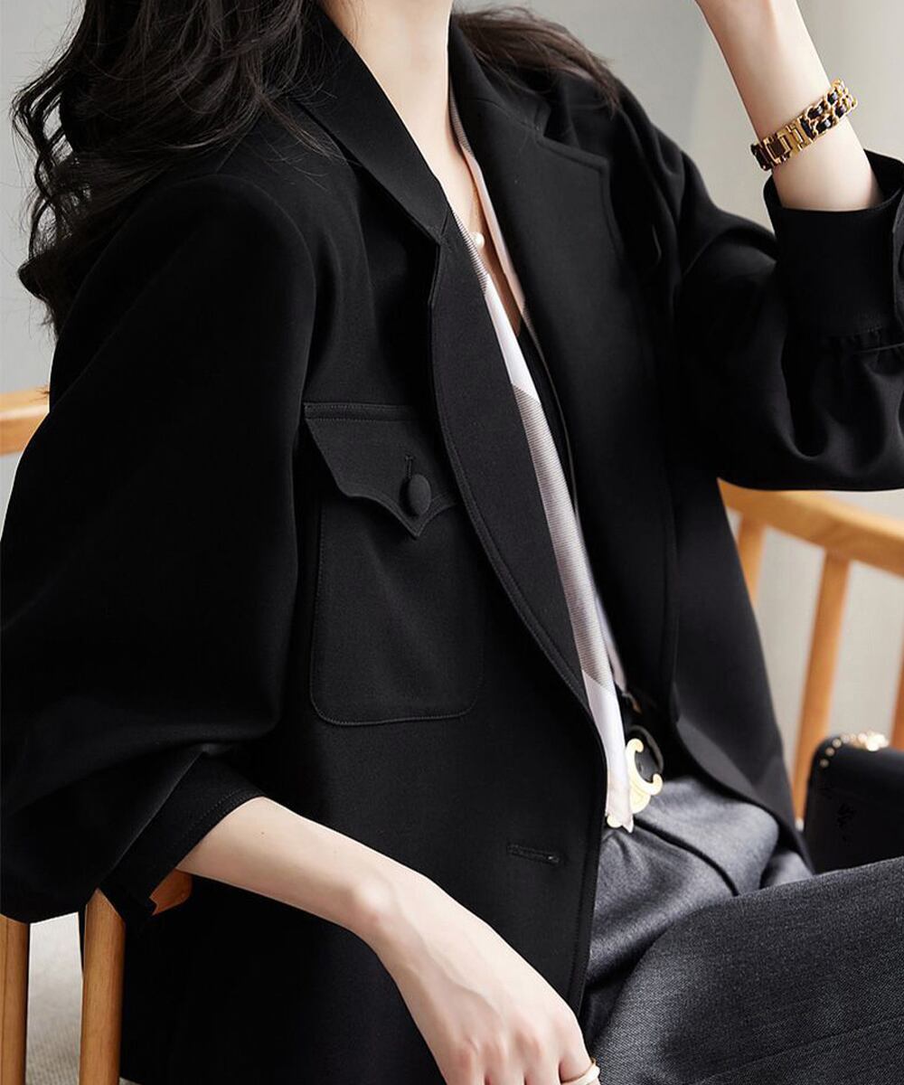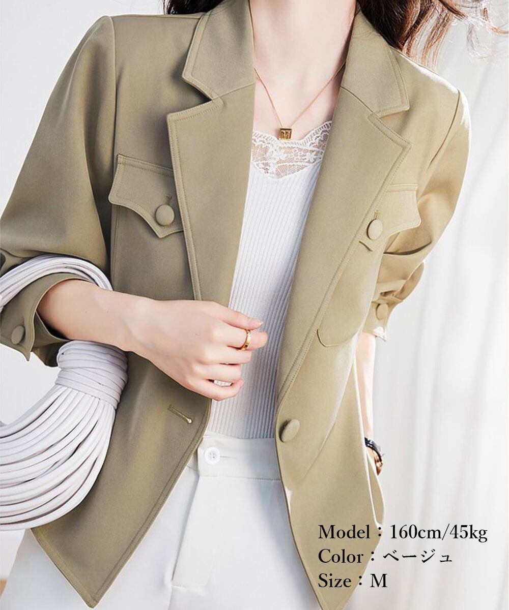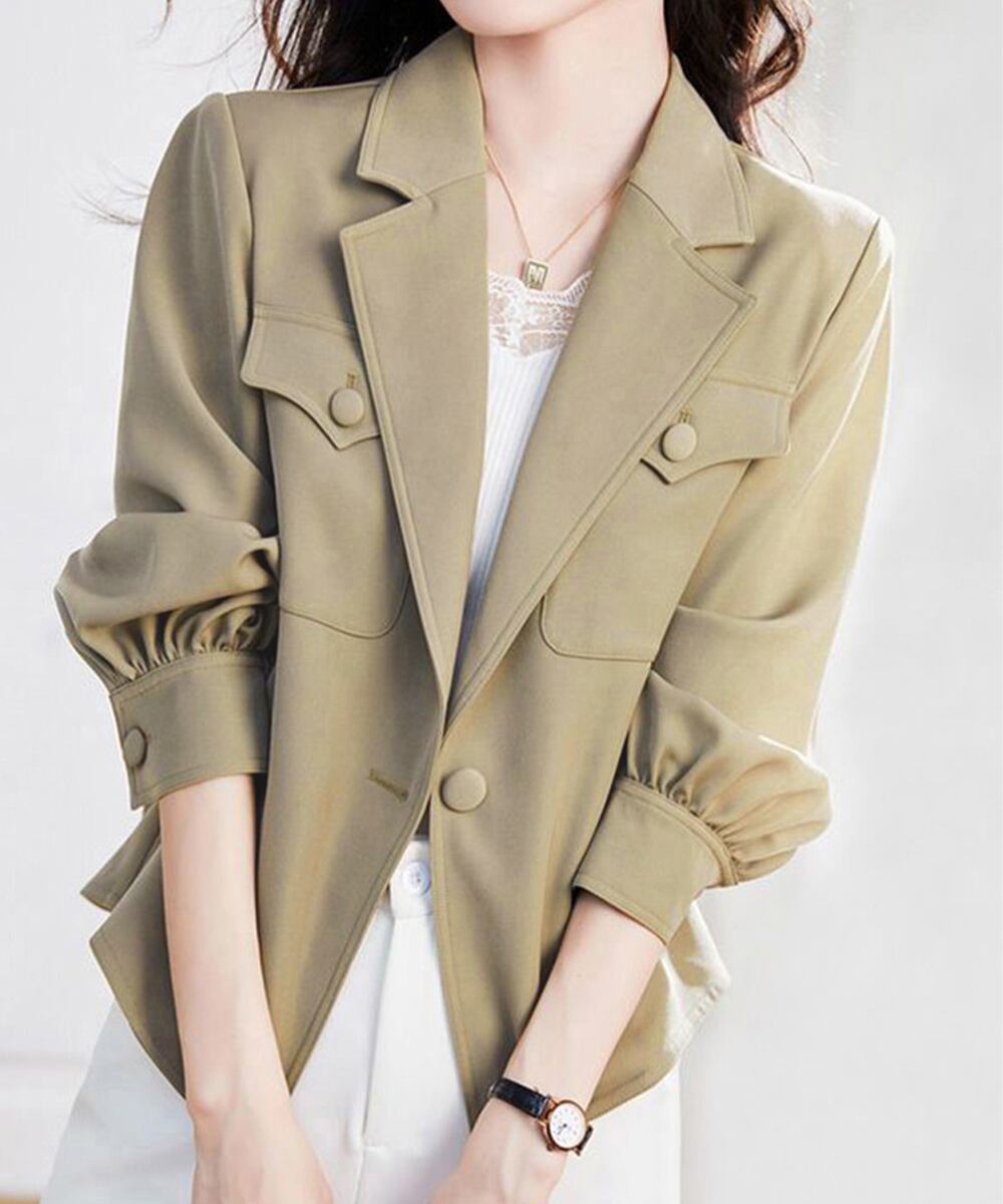 韓国 おしゃれライトアウター オフィス通勤着 胸前ポケット付き スーツジャケット 大人上品 ショートジャケット軽アウター