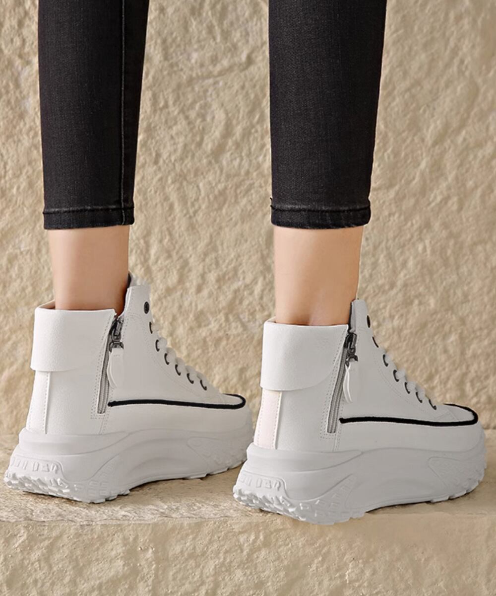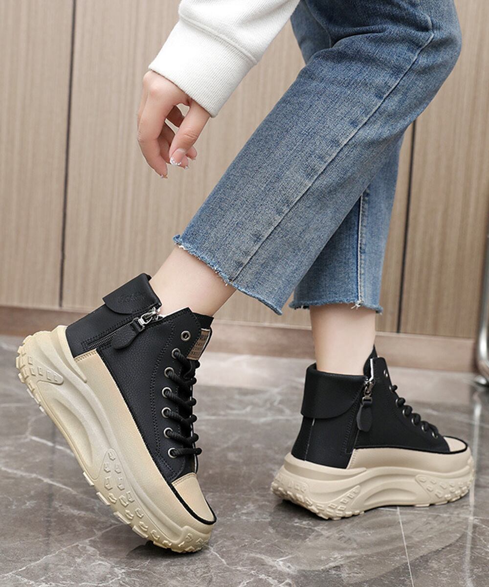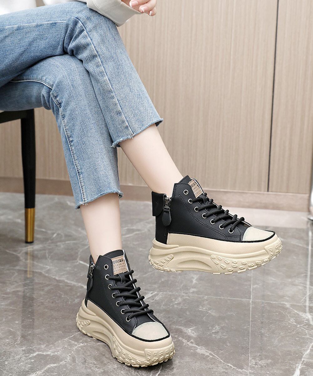 韓国 レースアップスニーカー 歩きやすい おしゃれ 美脚脚長 疲れないシューズ ボリュームソール 厚底スニーカー白 四季