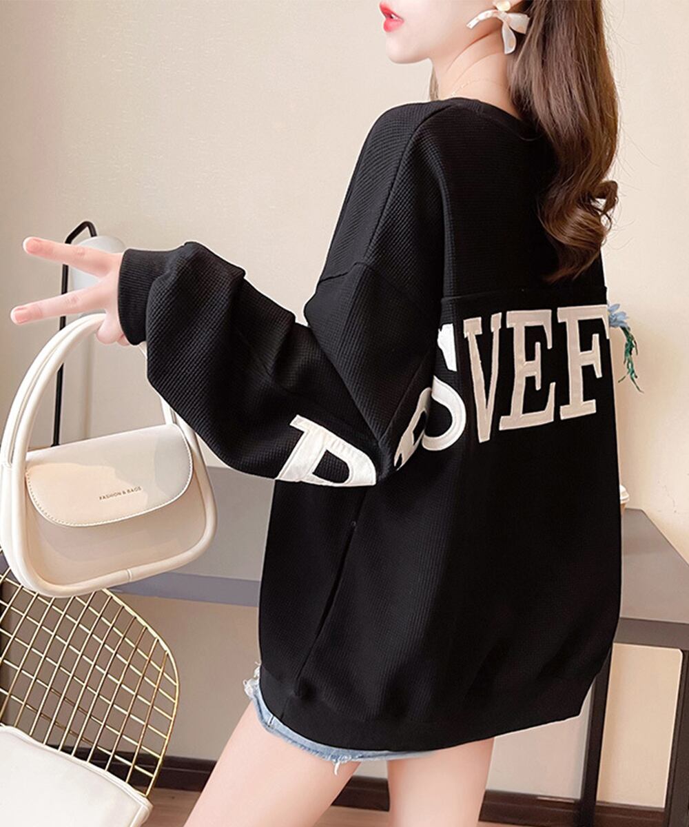 韓国風ロングTシャツ ビッグシルエット バックプリント 体型カバーゆるトップス  カジュアル 長袖薄手春秋服クルーネック